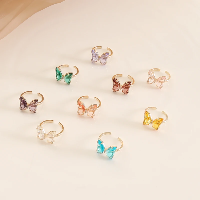 Разноцветные циркониевые регулируемые открытые кольца с бабочкой для женщин, модное креативное кольцо, ювелирные изделия для вечеринок