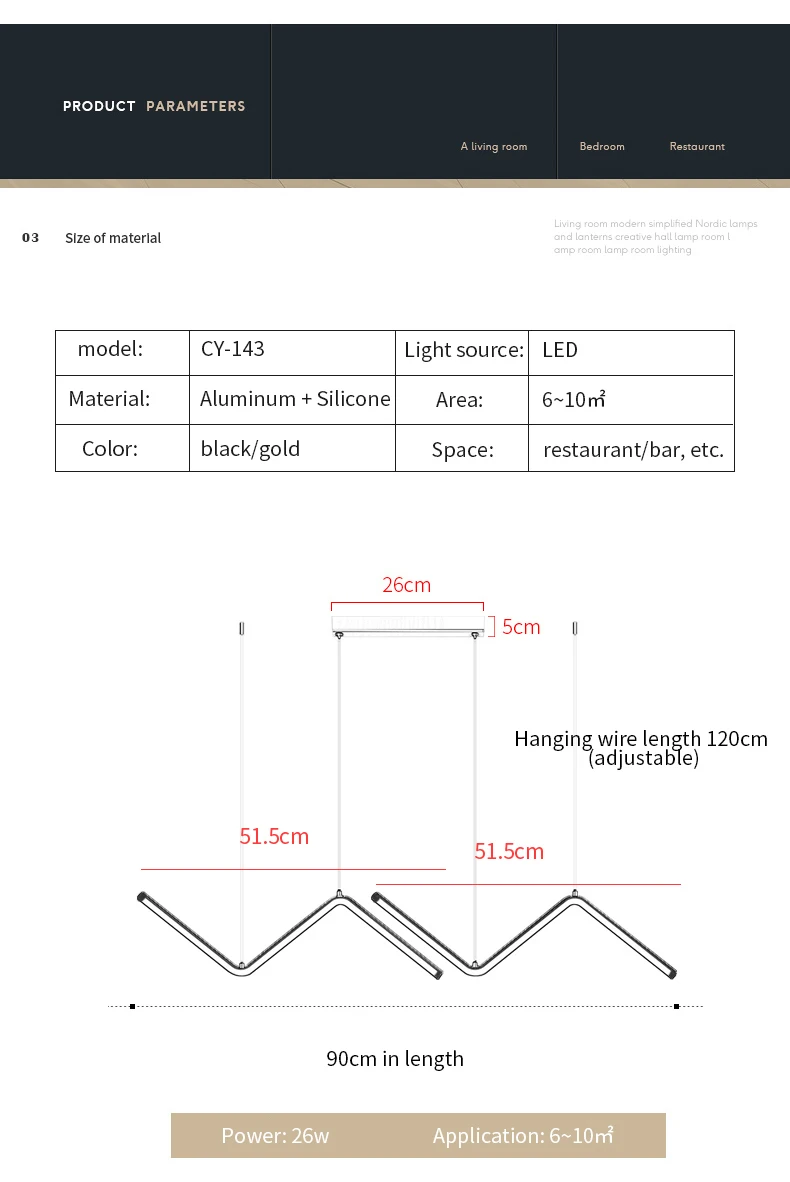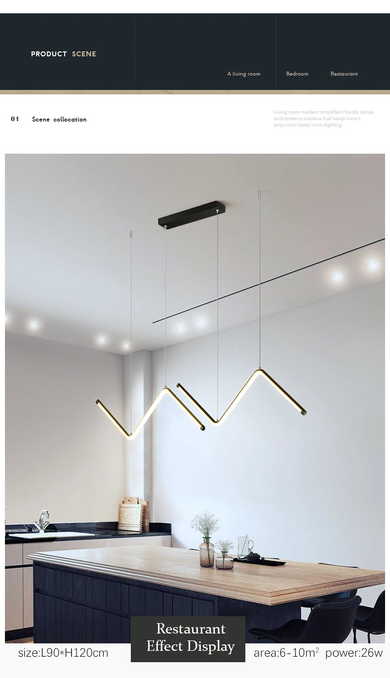 Современная люстра светодиодный светодиодная подвесная проволока, Черное золото, подвесные лампы, трубчатые лампы для ресторана, кухни, офиса, спальни, декоративные светильники для помещений