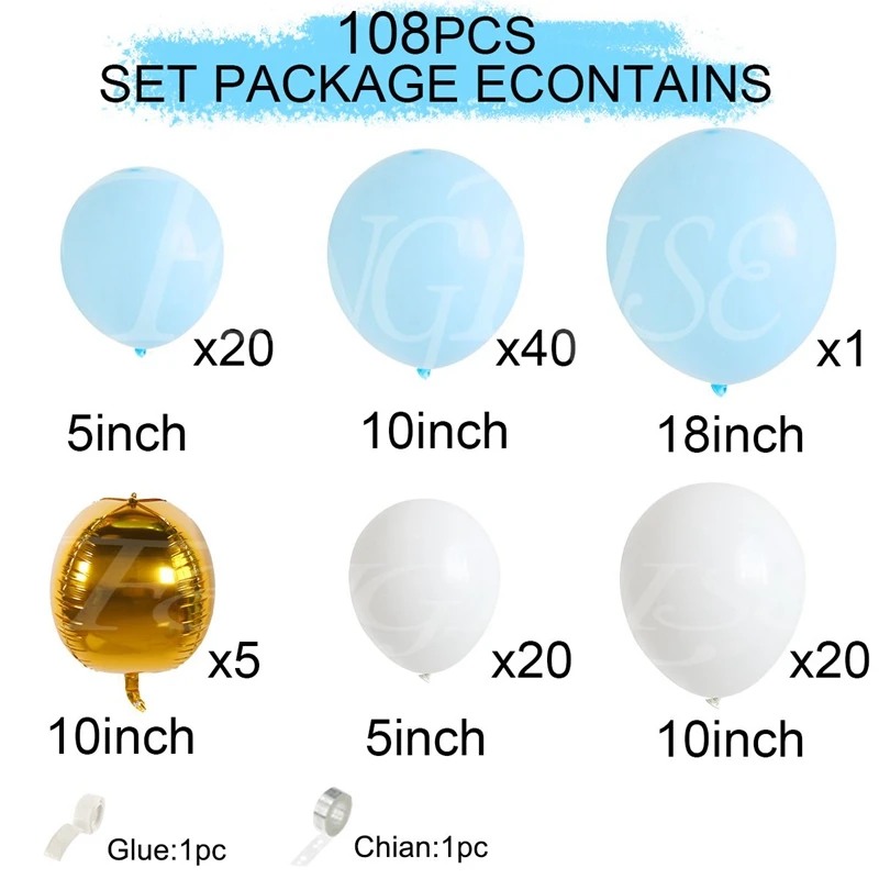 Голубой ко дню рождения металлический шар гирлянды арочный комплект цепи свадьбы детского дня рождения детская и взрослая День рождения Декор шаре баллоны