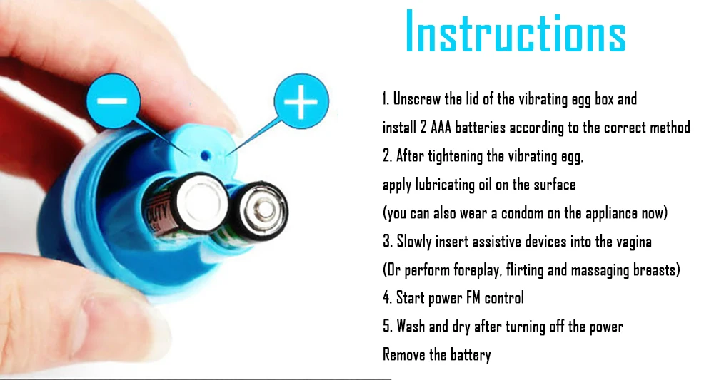 Инструкции: 1. Отвинтите крышку вибрирующей коробки для яиц и Установите 2 батарейки AAA в соответствии с правильным методом 2. После затягивания вибрирующего яйца, Нанесите смазочное масло на поверхность (Вы также можете носить презерватив на приборе сейчас) 3. Медленно вставьте вспомогательные устройства во влагалище (Или выполнять прелюдию, флиртовать и массировать грудь) 4. Запуск питания FM управления 5. Стирать и сушить после выключения питания Снимите аккумулятор Анализ функций Кнопка выключения и кнопка FM Кнопка питания и кнопка FM Кнопка climax и кнопка выключения объединены в один Многочастотная вибрация Экологически чистый силикон Дистанционное управление в режиме ожидания/выключение Низкий децибел