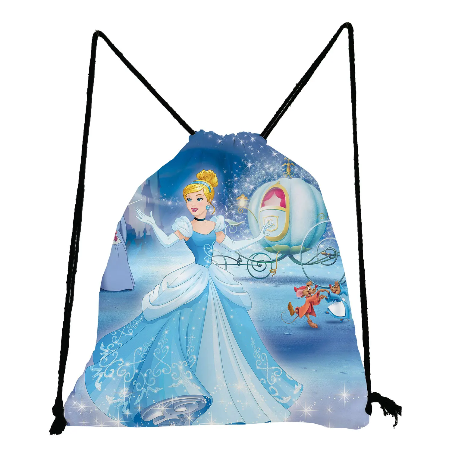 Disney Princess, Золушка, сумка на шнурке, Детский рюкзак, мультяшная книжная сумка, синяя сумка для хранения, школьная сумка для девочек, уличная мягкая задняя Сумка