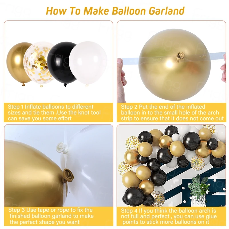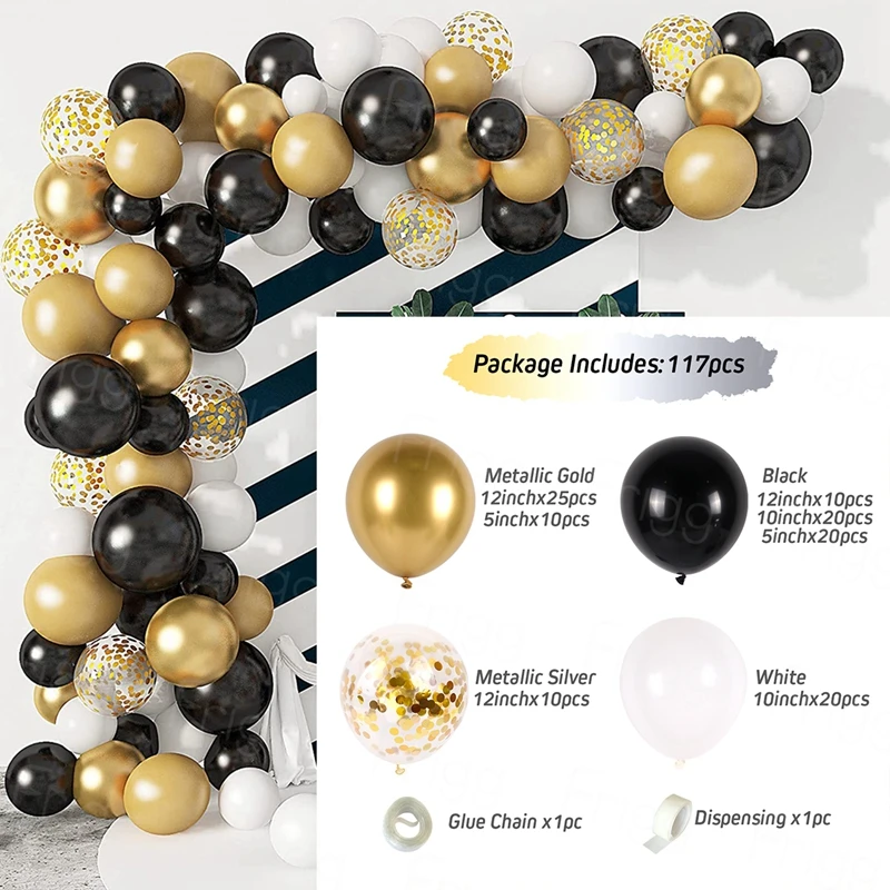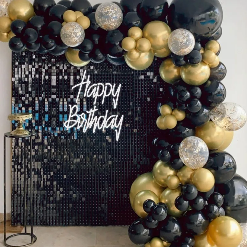 Гирлянда из черных и золотых воздушных шаров на день рождения