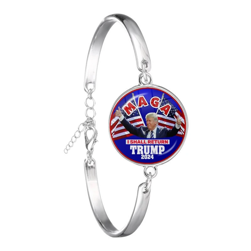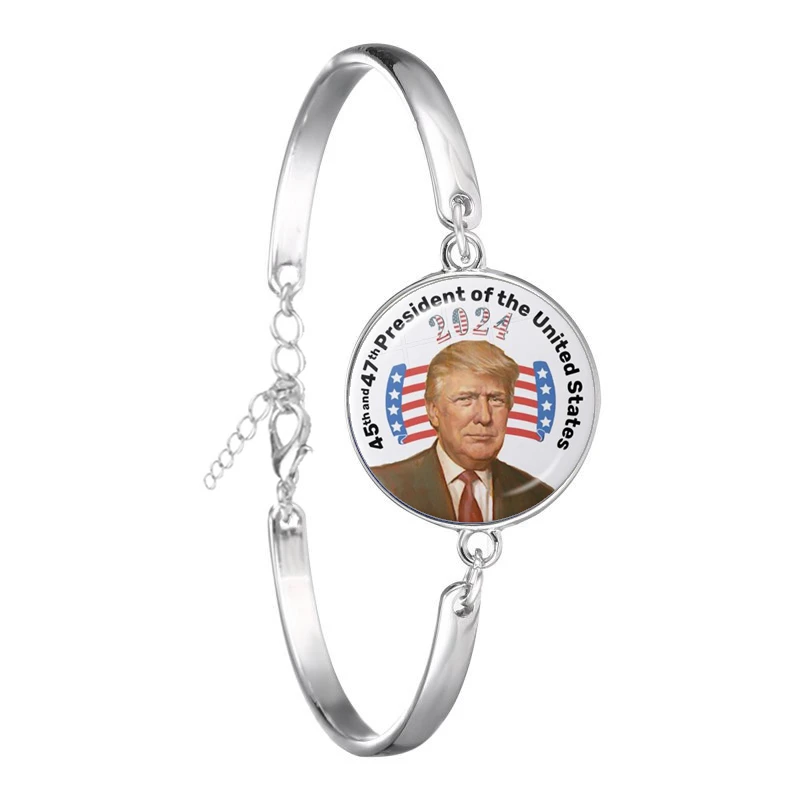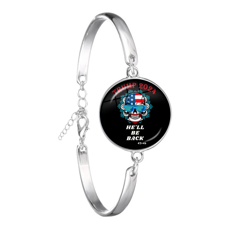 Он вернется браслет 2024 США Трамп коллекция стекло, кабошон, серебро позолоченный браслет ювелирные изделия для мужчин и женщин Поддержка Трамп