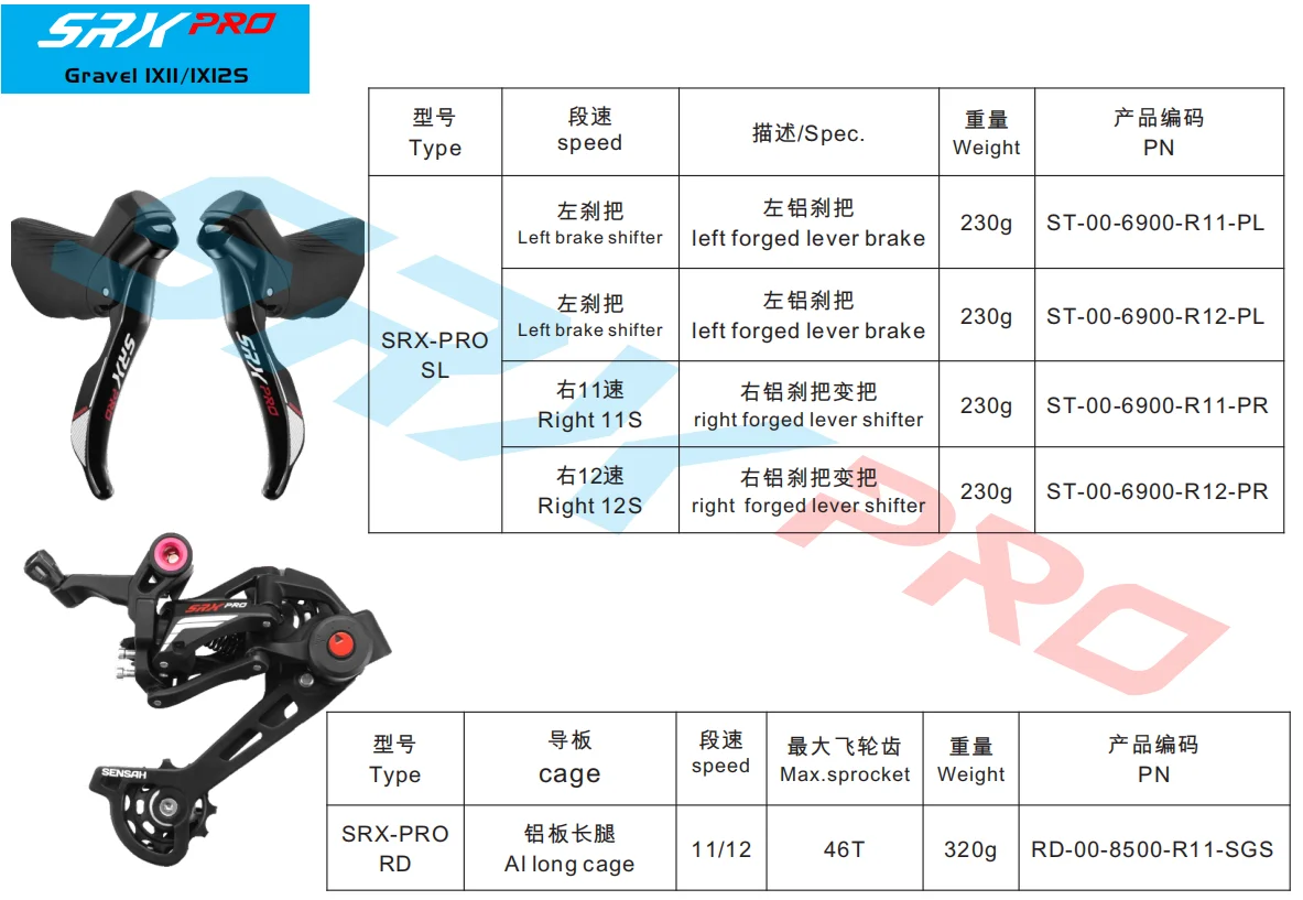 Комплект для велосипеда SENSAH 11 s SRX PRO 1x11 Speed, 11 s Road Groupset, RL переключатель + задние переключатели, велосипеды для гравия, велосипед для велокросса, шоссейный велосипед