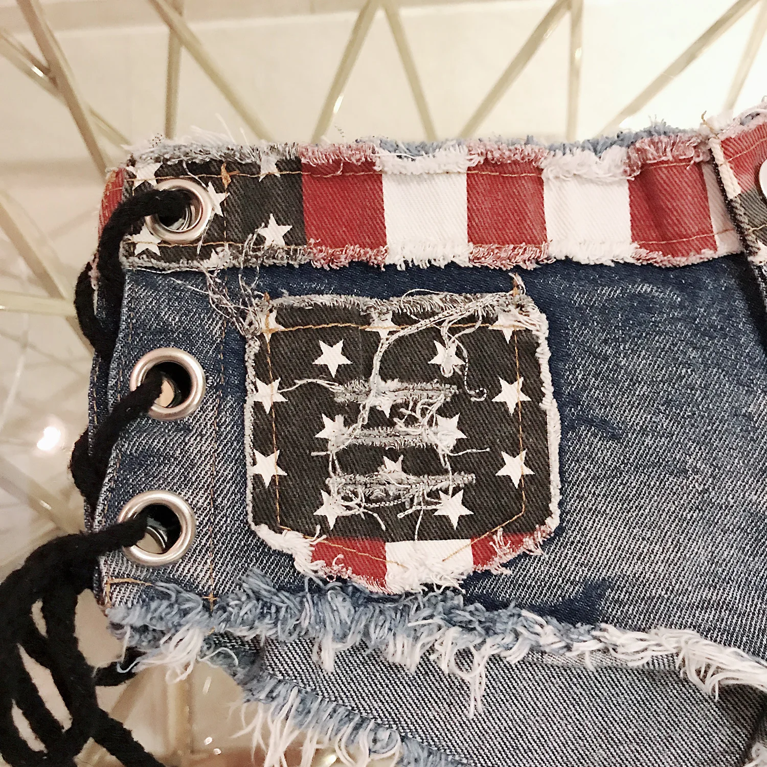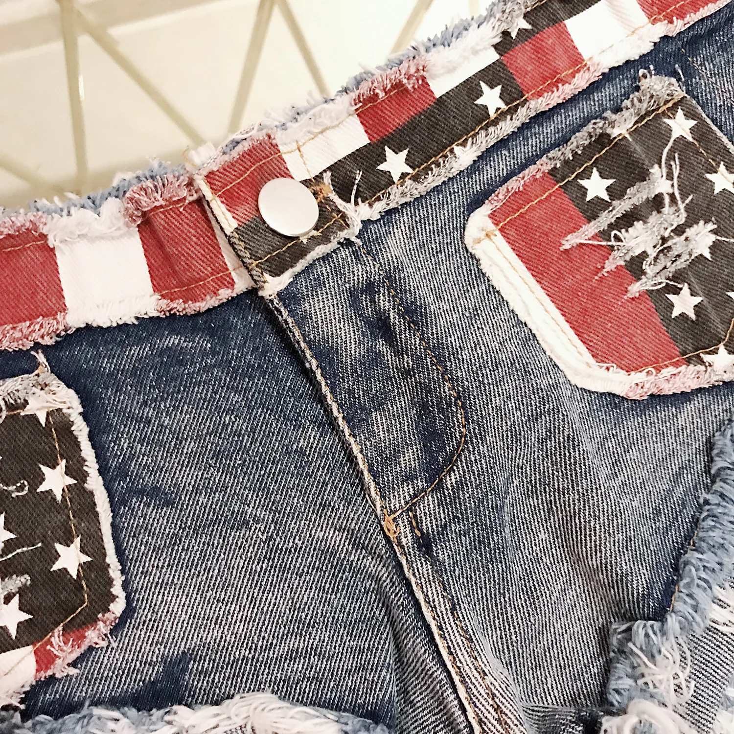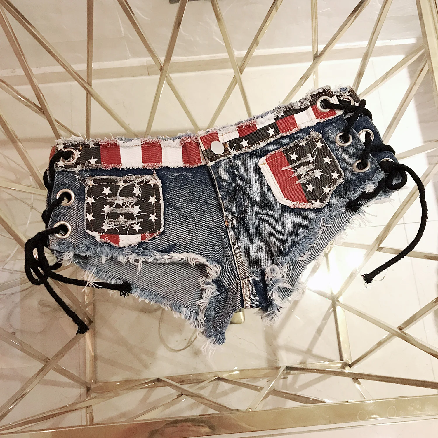 Пикантные женские джинсовые шорты, летние джинсовые шорты с принтом в виде Государственного флага, рваные шорты на шнуровке, женские обтягивающие очень короткие джинсы