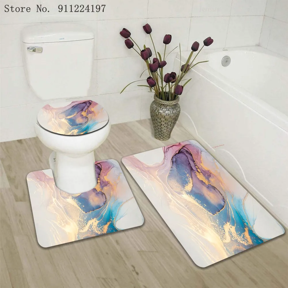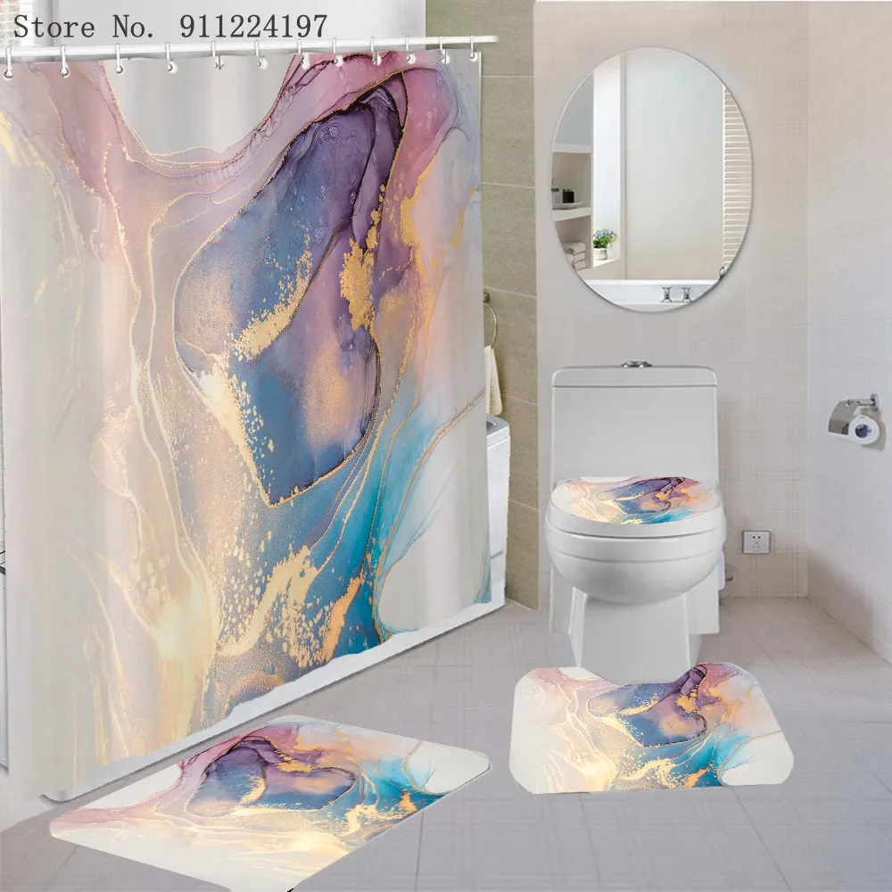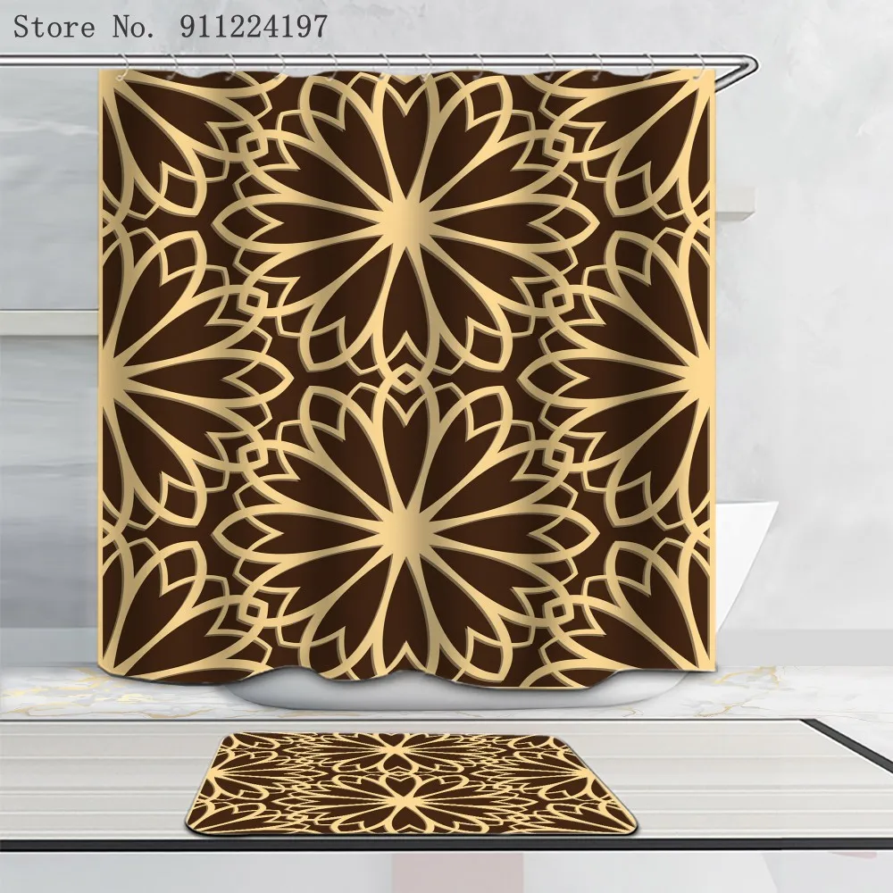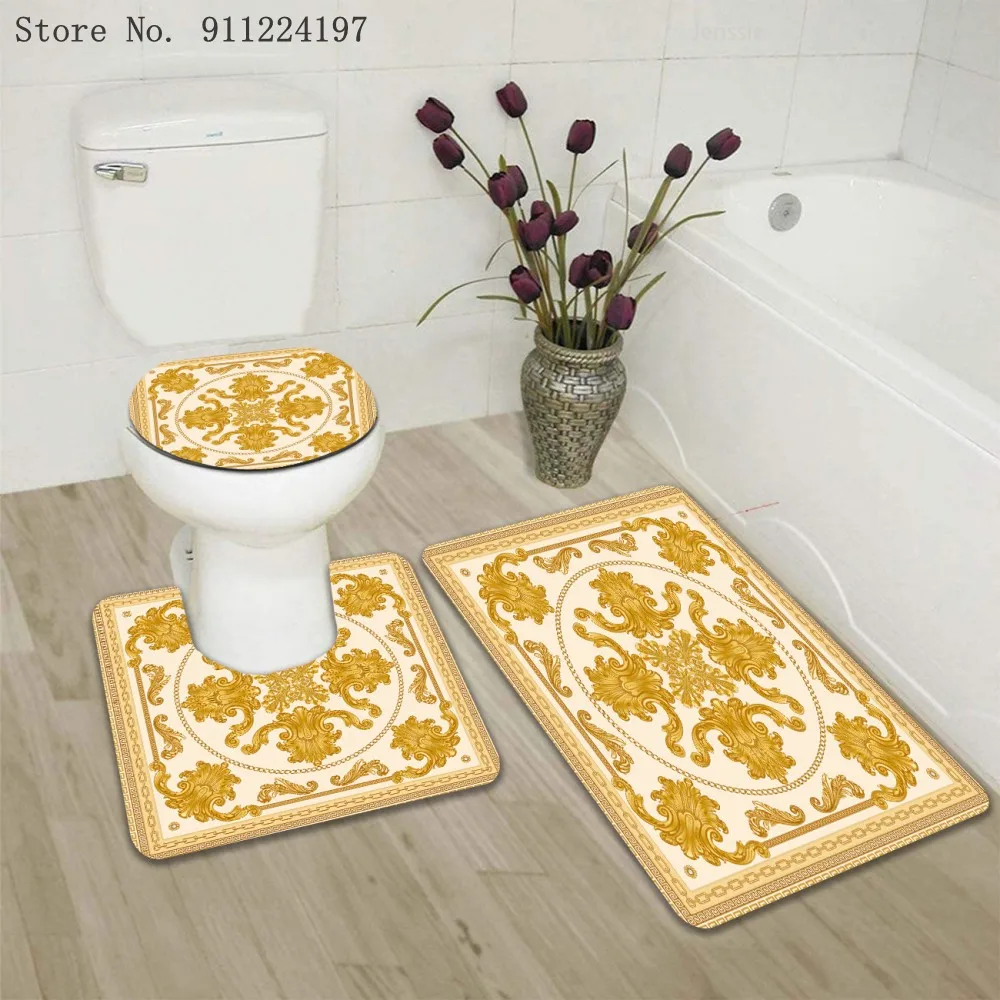 3D золотой полый узор занавеска для душа с нескользящим коврик для ванной Европейский стиль позолоченная занавеска для ванной комнаты s крышка для туалета Ванная комната Декор