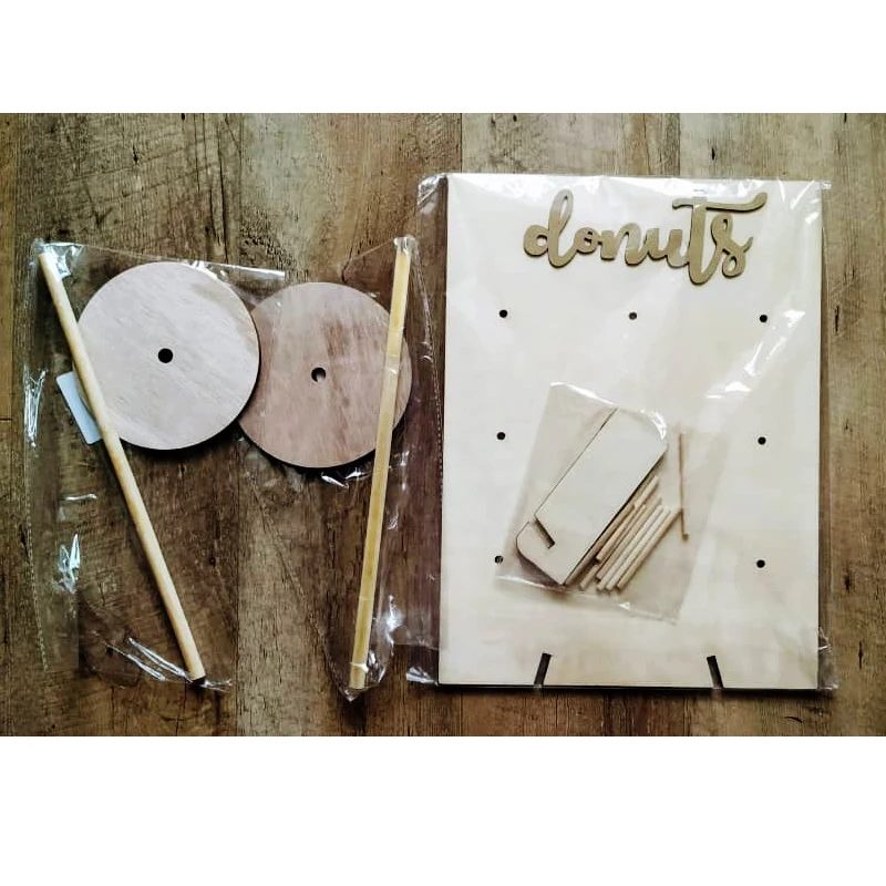 20 палочек, деревянная стена пончика, черные акриловые буквы, пончи...