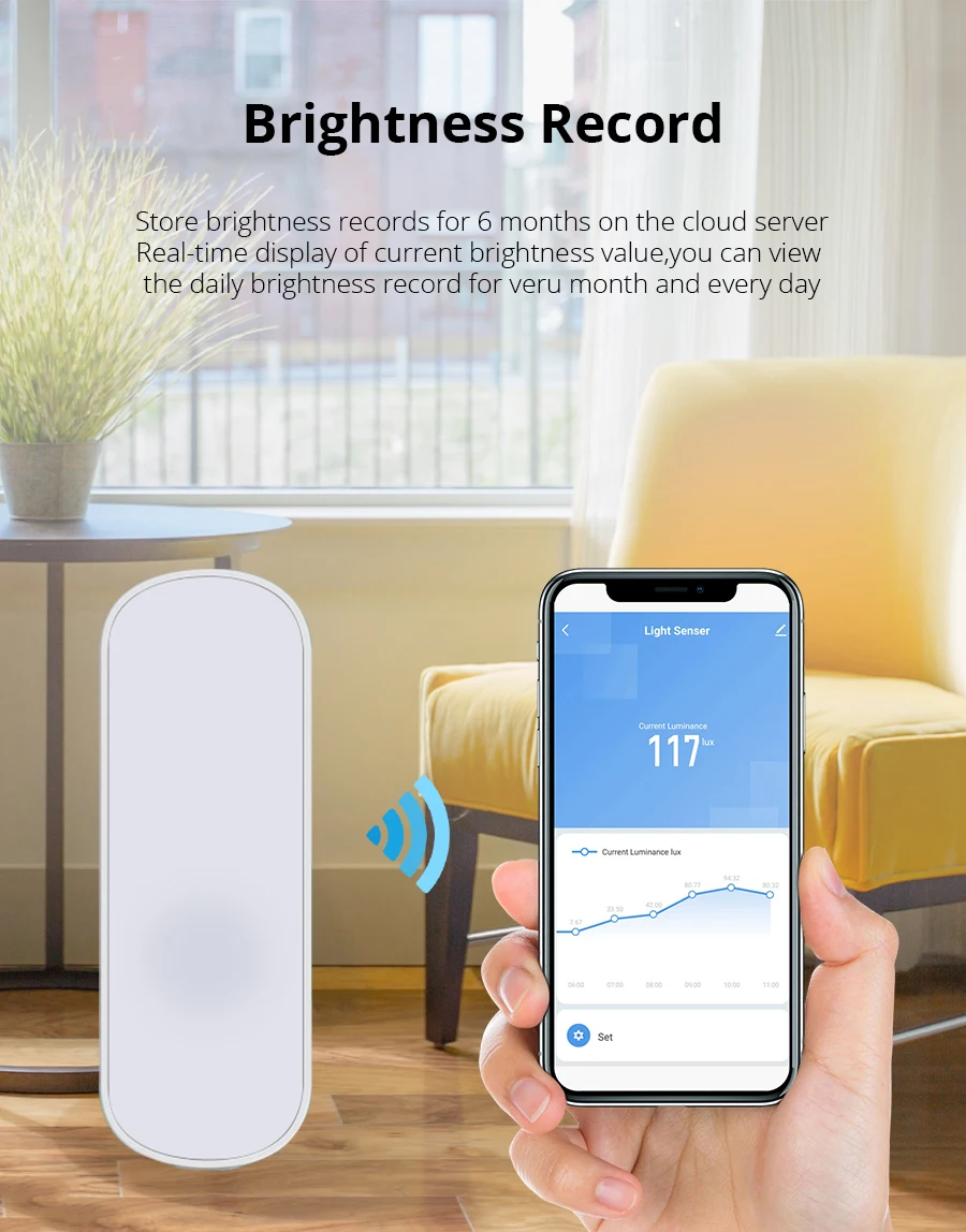 -Вы можете задать значение яркости, когда Яркость соответствует условиям, немедленно нажмите уведомление или триггер другой продукт samart для достижения автоматизации