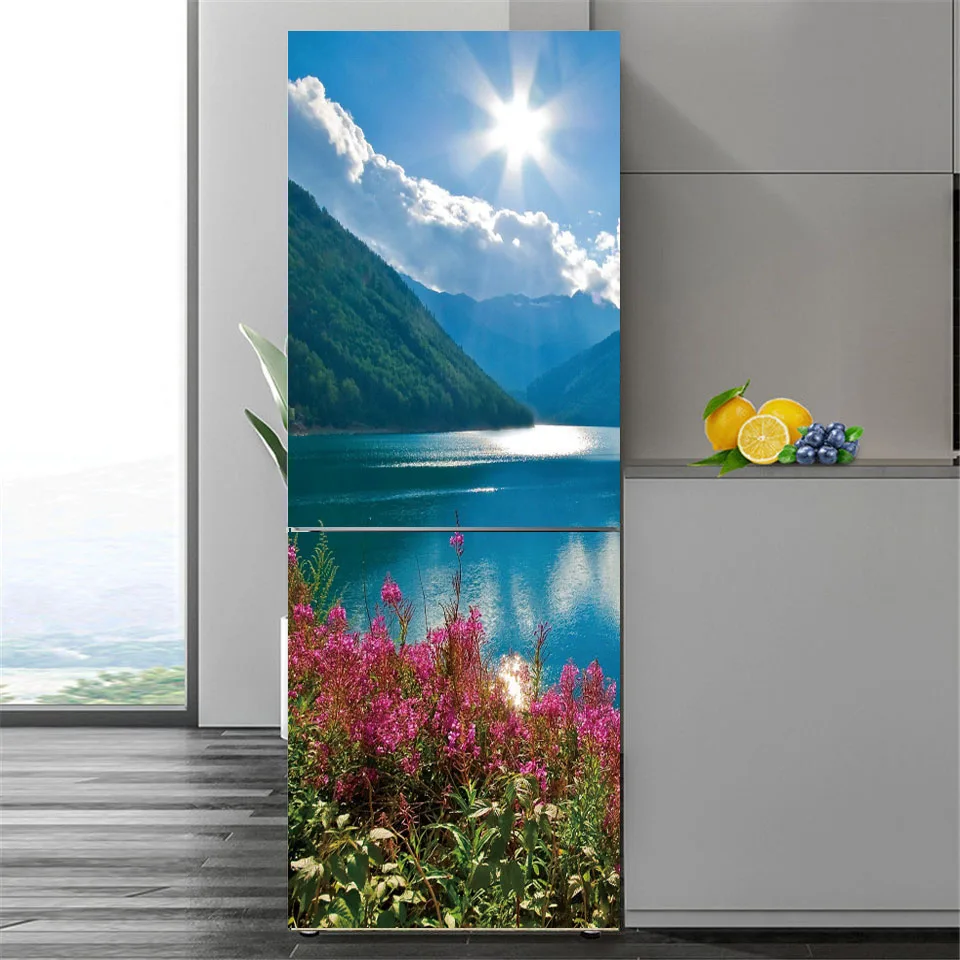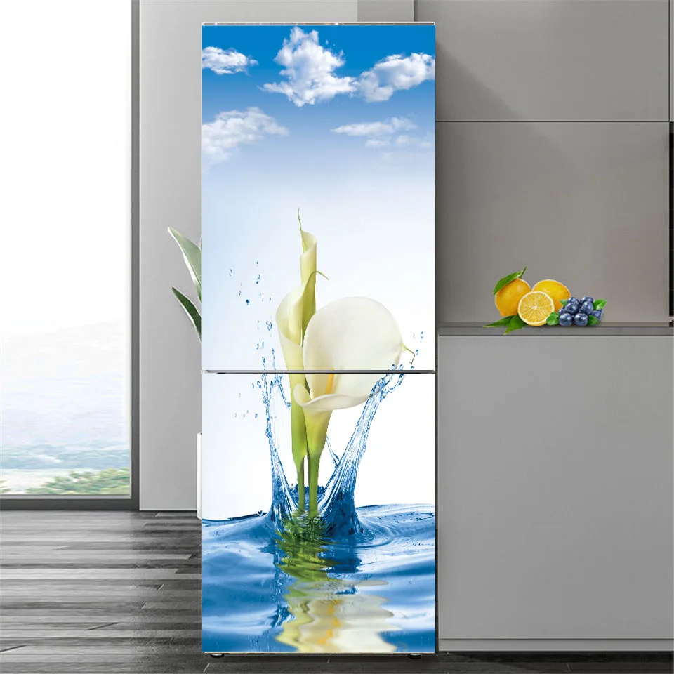 Water Lotus с холодильник Стикеры клей Водонепроницаемый 3D обои статуя Будды башня декорации двери плакат домашний декор настенные наклейки с росписью