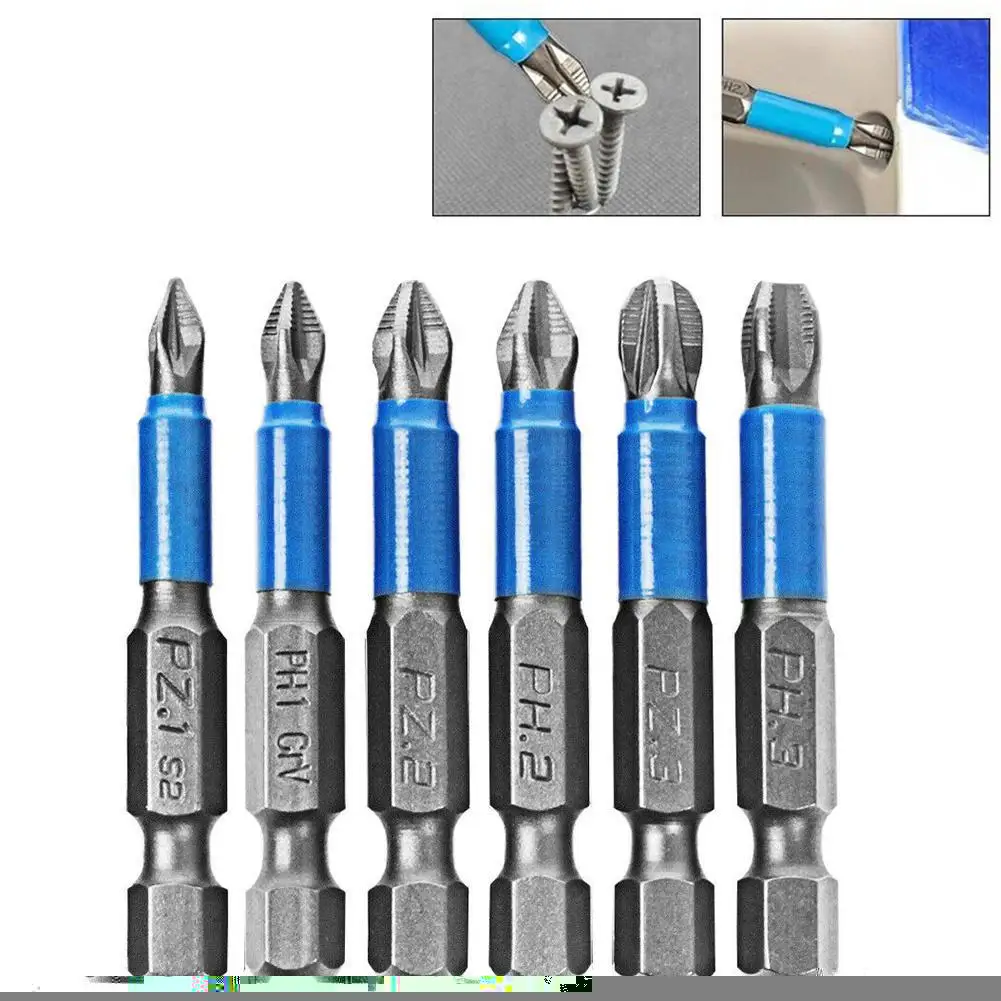 Набор насадок для электрической отвертки PH1, PZ1, PH2, 6 шт., 50 мм