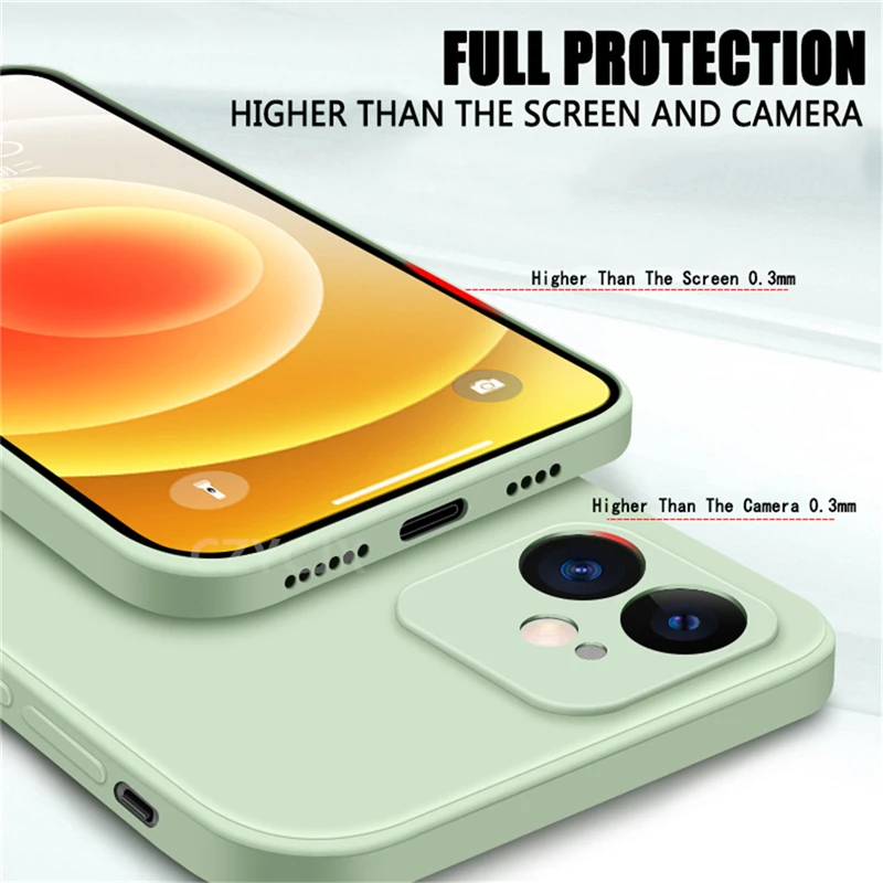 Features1:Liquid Silicone Square Frame Phone Case For iPhone 13 Pro Max 11 12 Minni