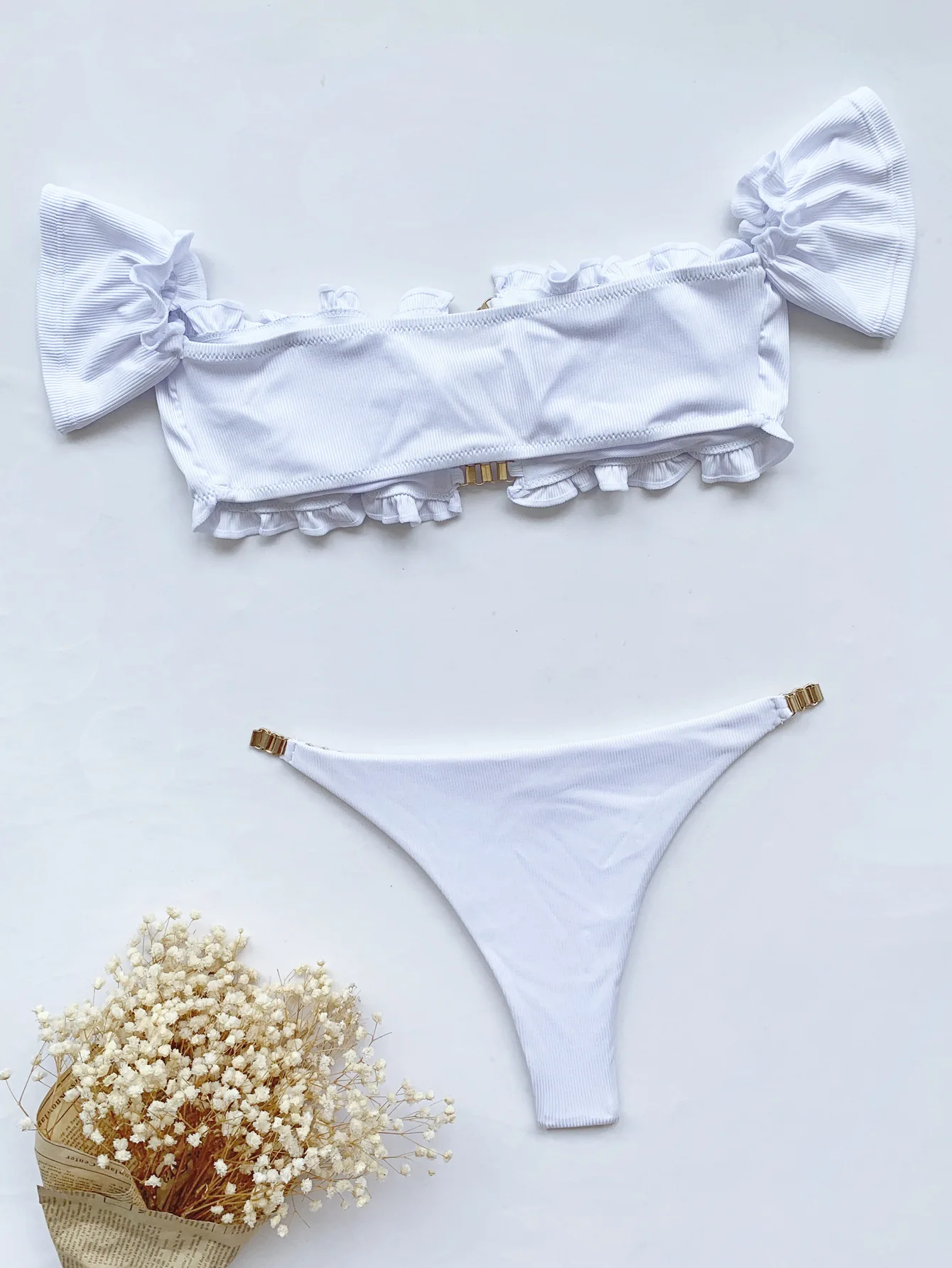 Винтажное однотонное бикини с рюшами, 2021 сексуальный купальник, ж...