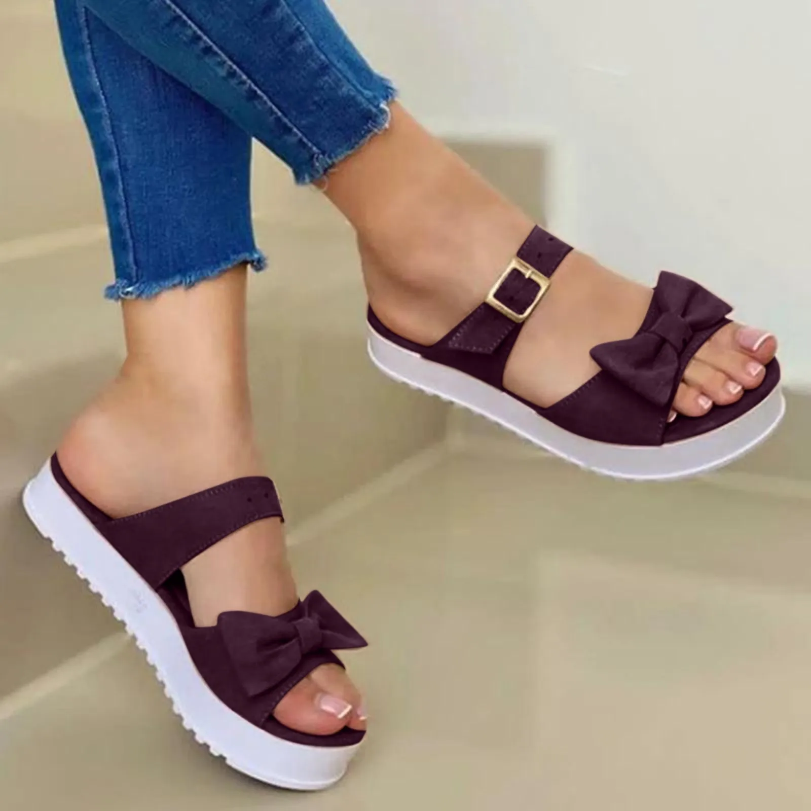 JAYCOSIN лето мода размера плюс с бантом пляжные с открытым носком, на плоской подошве, сандалии, женская обувь без застежек, на плоской подошве, сандалии для женщин; Sandalias De Mujer; Большие размеры