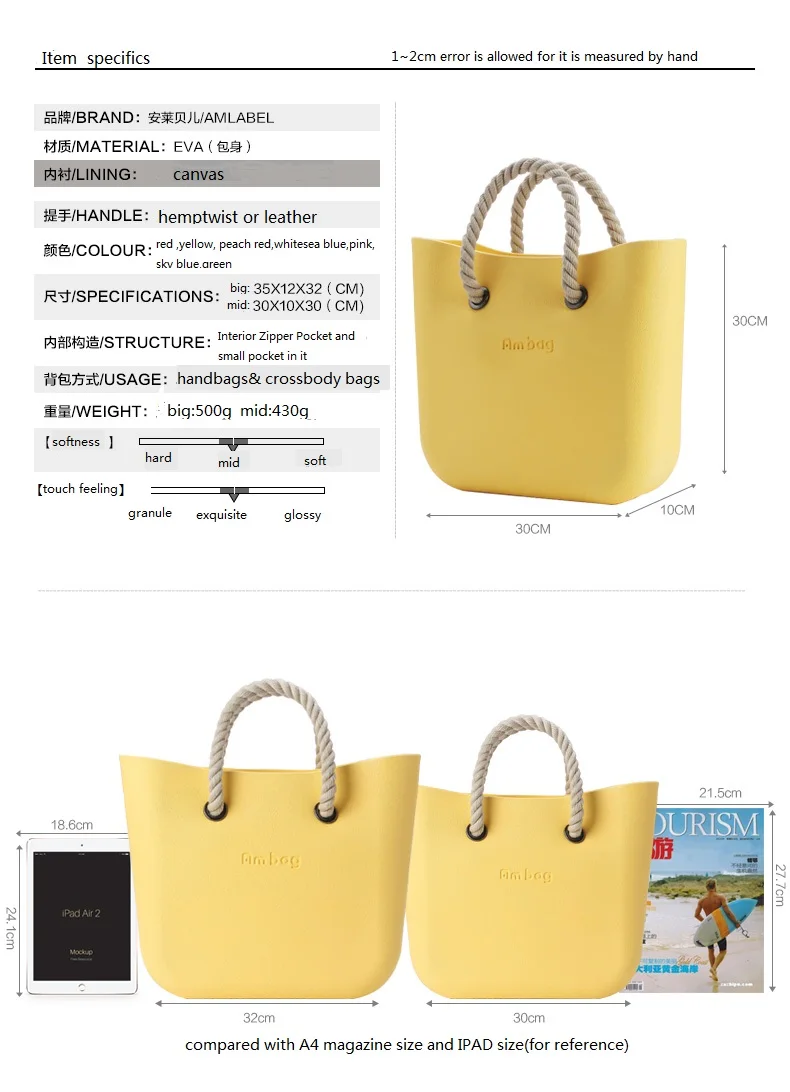 Новинка, мини-сумка из ЭВА с прочной молнией, внутренняя короткая пеньковая веревка, ручки из пеньковой веревки, сумка Obag O, стильная Водонепроницаемая Женская сумочка сделай сам