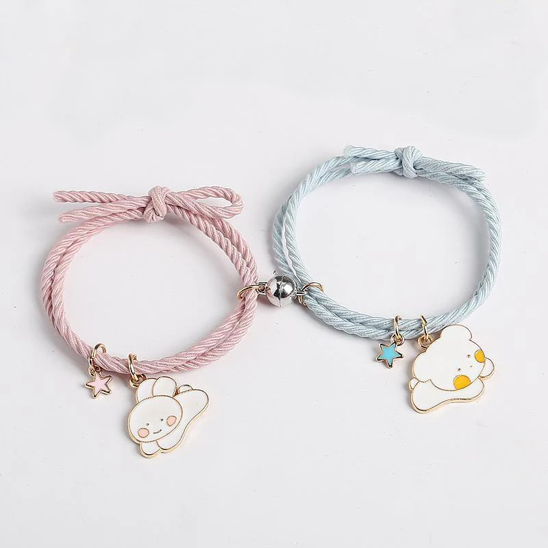 Парные браслеты 2 шт., милый магнитный кулон в виде медведя, кролик...