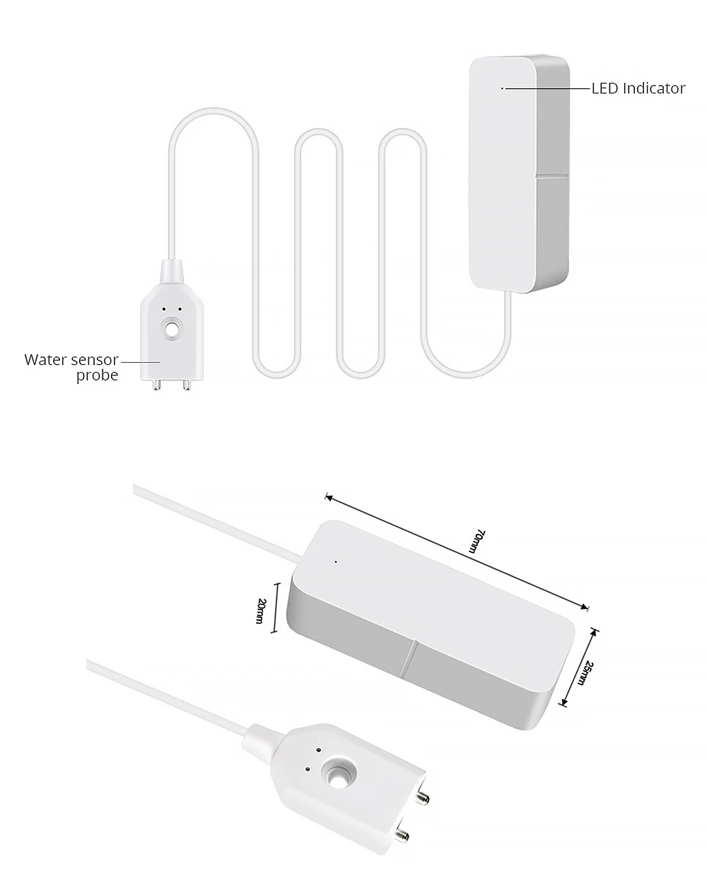 1. Вода poof, обнаружение утечки воды Датчик может определить, есть ли утечка воды в месте установки. Если это обнаружится, информация будет немедленно передвинута на телефон. 2. Легко установить Установка датчика очень проста, вы можете использовать клей краны или винт (в комплекте) Набор для установки в месте, которое вам нужно установить, обратите внимание, что место установки может быть подключено к Wi-Fi роутеру.. 3. Используйте Wi-Fi, не требуется концентратор Датчик использует Wifi для передачи данных с сервера. Пока есть Wi-Fi сеть, подключенная к Интернету дома, она может соответствовать условиям установки. 4. Удаленный мониторинг Информация о сигнале тревоги и записи датчиков хранятся на сервере. Этот дизайн позволяет нам контролировать, есть ли вода в доме или офисе из любого места через смартфон. И также может поделиться контрольной информацией устройства с другими. 5. Низкое потребление батареи Потребляемая мощность датчика в режиме ожидания очень мала, и две батареи LR03 AAA используется для одного года. И когда обнаружится, что батарея низкая, она напомнит вам заменить батарею через сообщение тревоги.