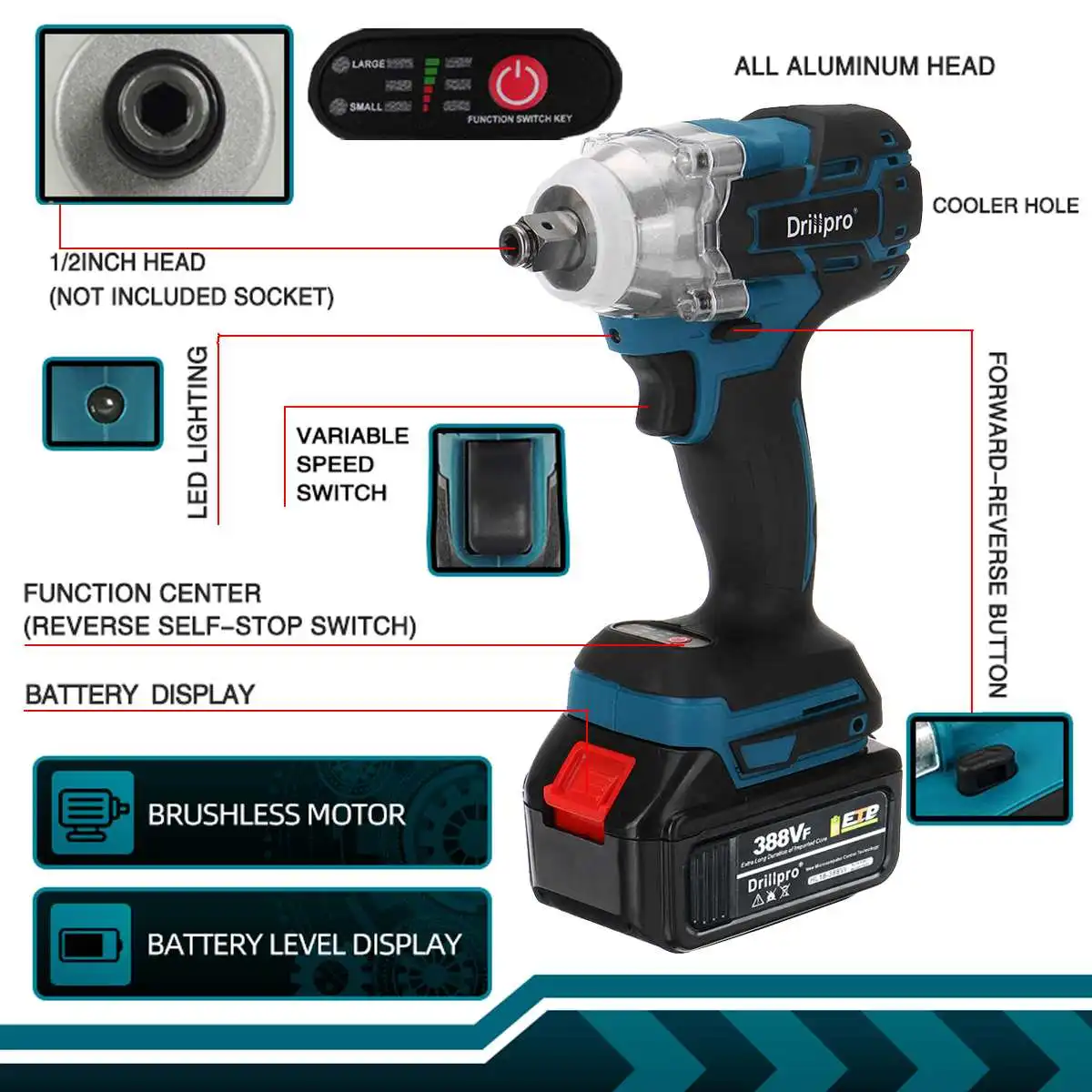 Особенности-Большой крутящий момент Нм, бесступенчатый переключатель переключения скорости.-Мощный электрический ключ, многоцелевой, сверхмощный.-Вал из вольфрамовой стали, высокая твердость и износостойкость.-Подходит для полок строительной площадки, обслуживания, деревообработки и т. Д.-Бесщеточный двигатель не создает искр во время работы, двигатель не износ.