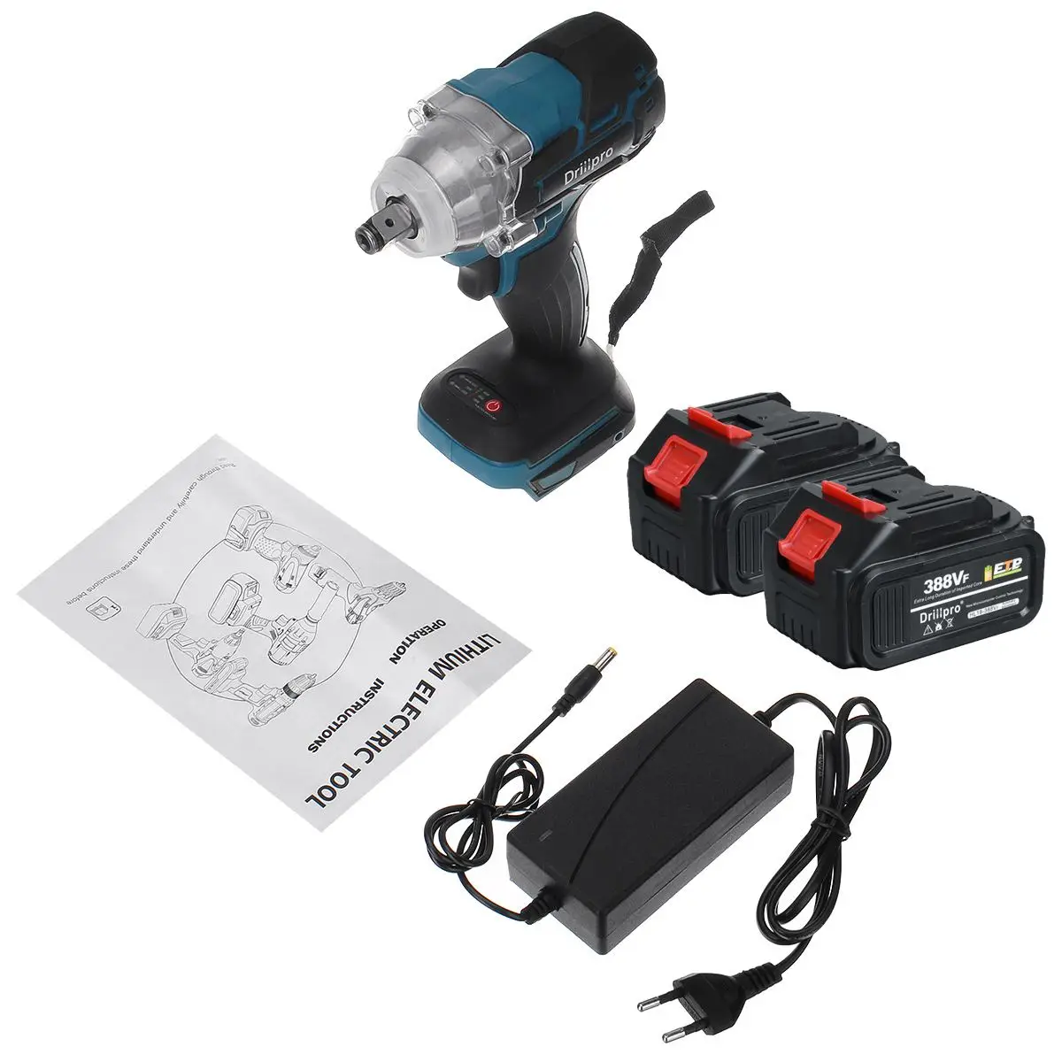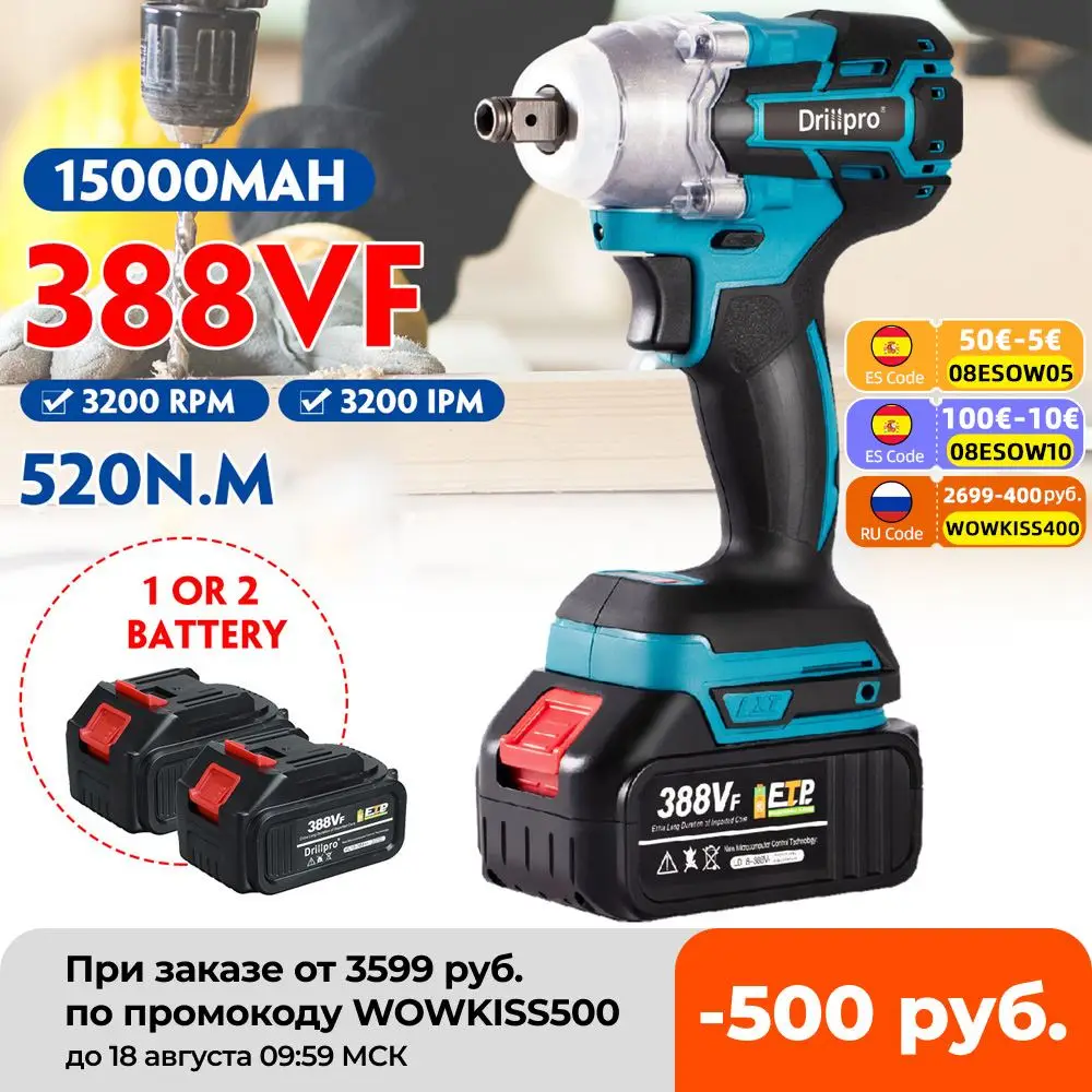 Гайковерт ударный беспроводной 388VF, 520 н м, с литиевой батареей 15 000 мА ч и светодиодный светильник кой, 18 в