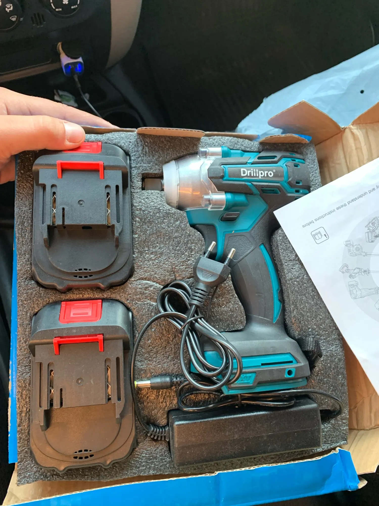 Все пришло быстро, гайковерт на вид качественный, гайки с колёс откупил без проблем, закрутил тоже, гаечным ключом не провернуть после него. Товар отличный, единственное была порвана коробка. Но внутри все целое, отличное качество за эти деньги!