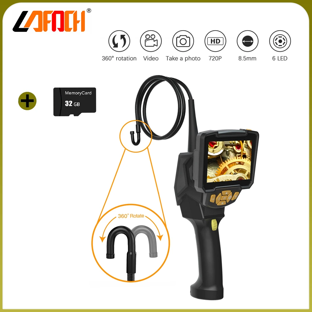 Эндоскоп с поворотом на 180360 градусов и ЖК-экраном, 8 мм