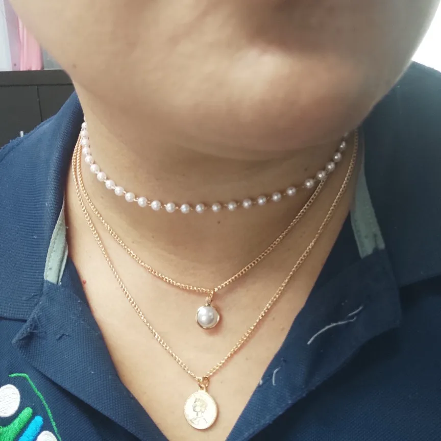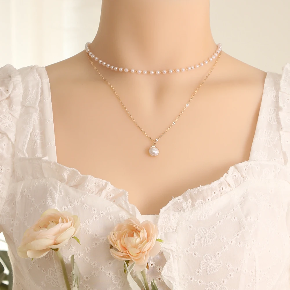 2021 модное ожерелье-чокер с жемчугом Kpop, милая Классическая двух...