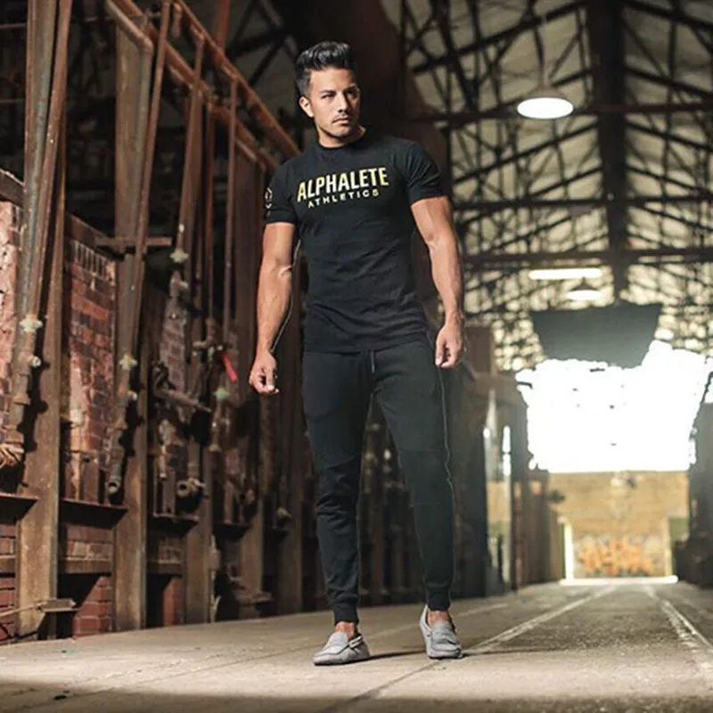 Брендовая мужская рубашка для тренажерного зала, футболка с коротким рукавом для фитнеса и бега, тренировочная спортивная одежда, Облегающая рубашка для бодибилдинга, Мужская футболка для тренажерного зала