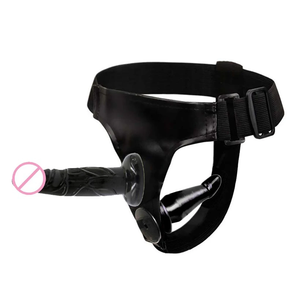 Черный кожаный ремешок на Реалистический Пенис двойные штаны с дырками для лесбиянок, пара страпон проводов G точечные фаллоимитаторы