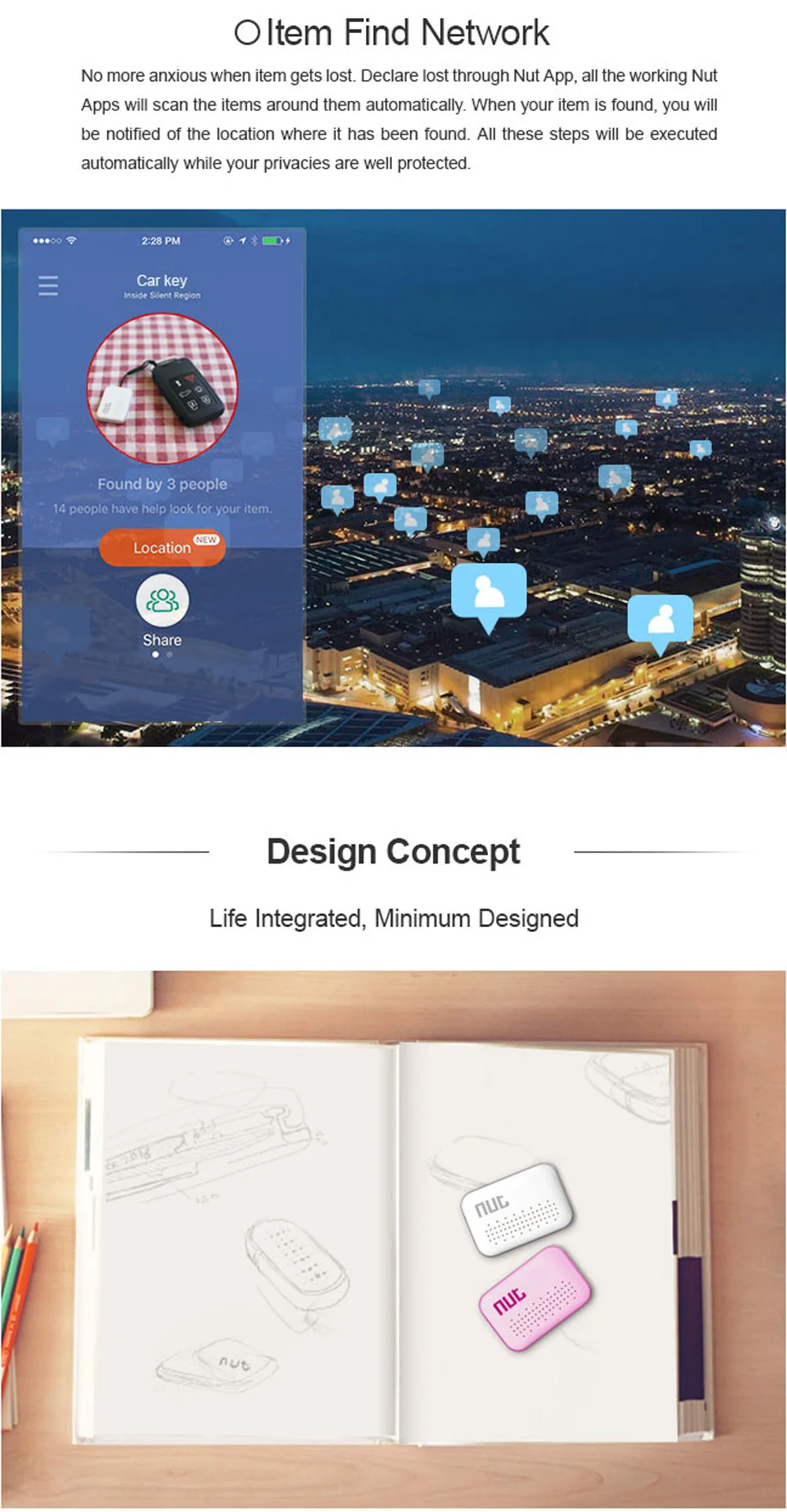 Благодаря миниатюрному размеру и изысканному корпусу смарт-трекер nut mini защищает ваши вещи от потери помогает легко находить предметы или людей, безопасно и удобно.