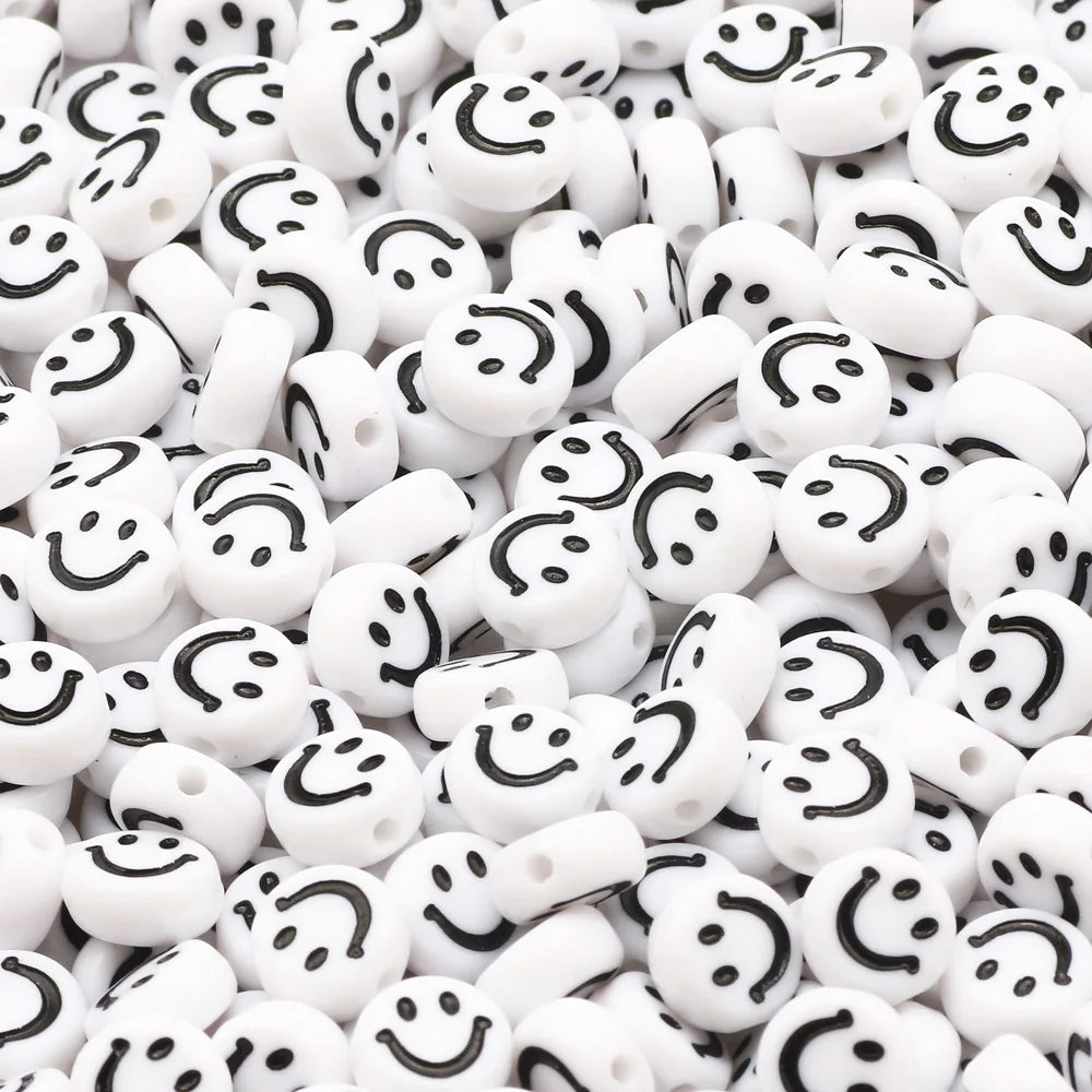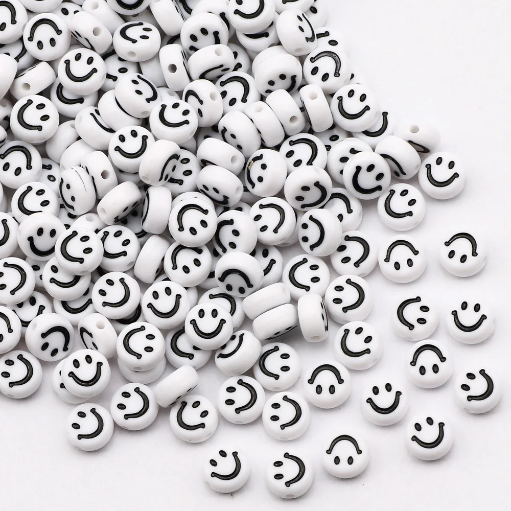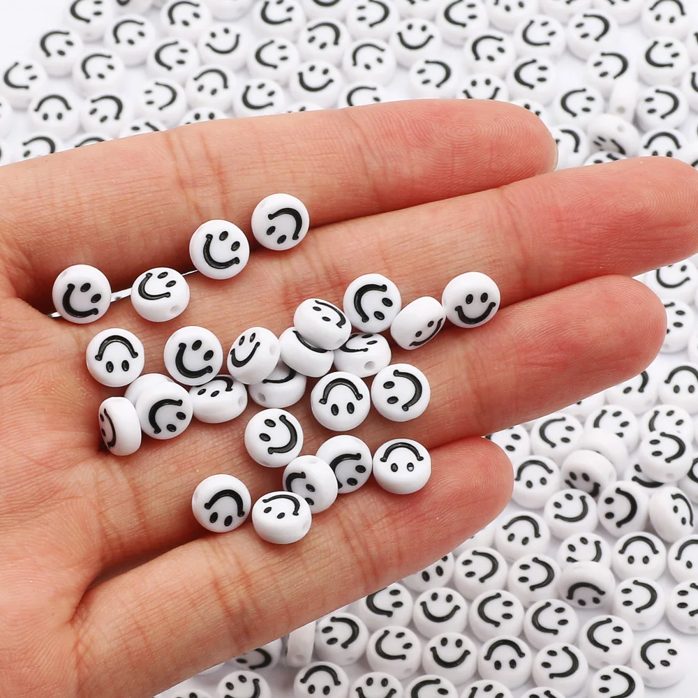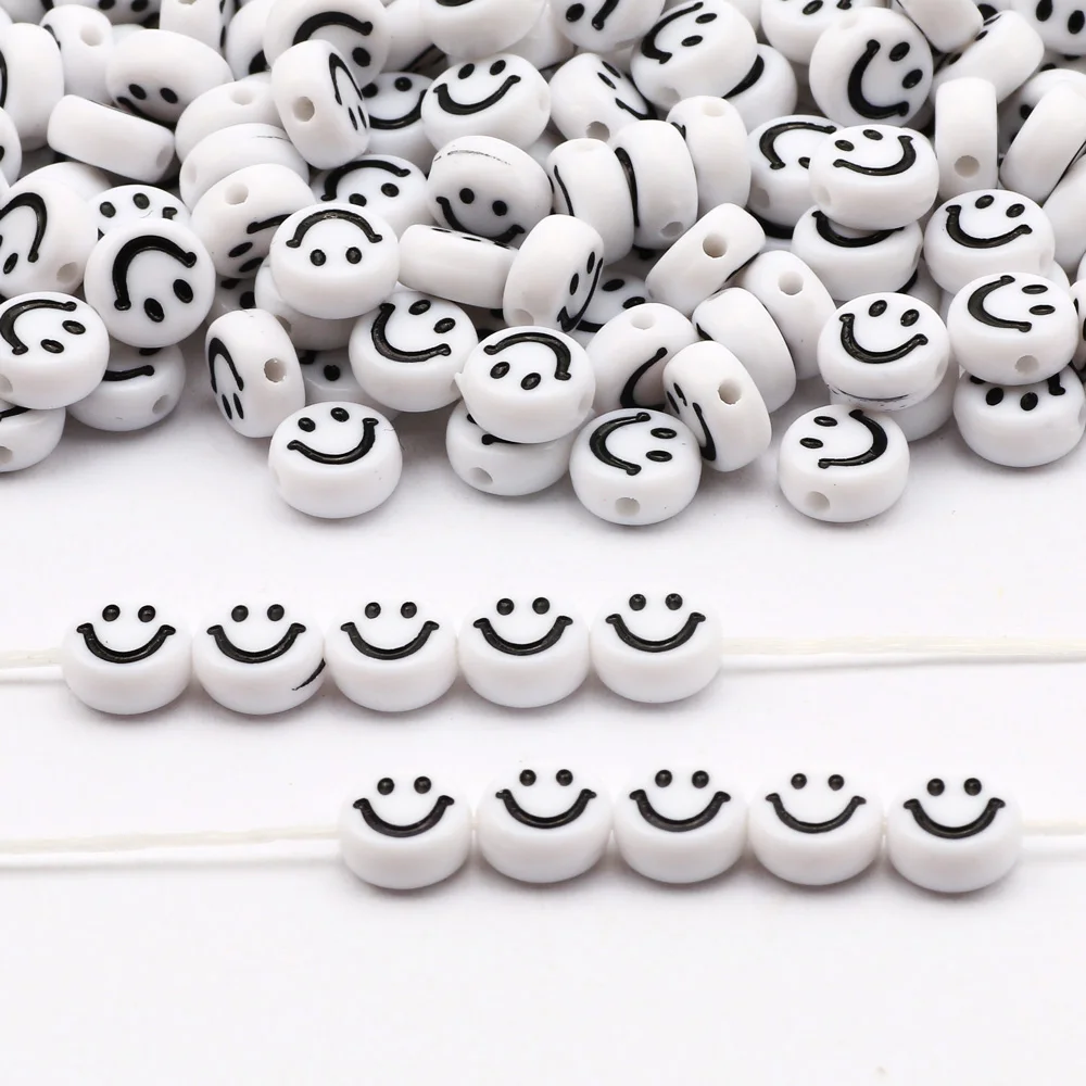 Плоские круглые белые и черные акриловые бусины со смайликом, 7 мм, бусины с отверстием для изготовления ювелирных изделий сделай сам, аксессуары для браслетов ручной работы