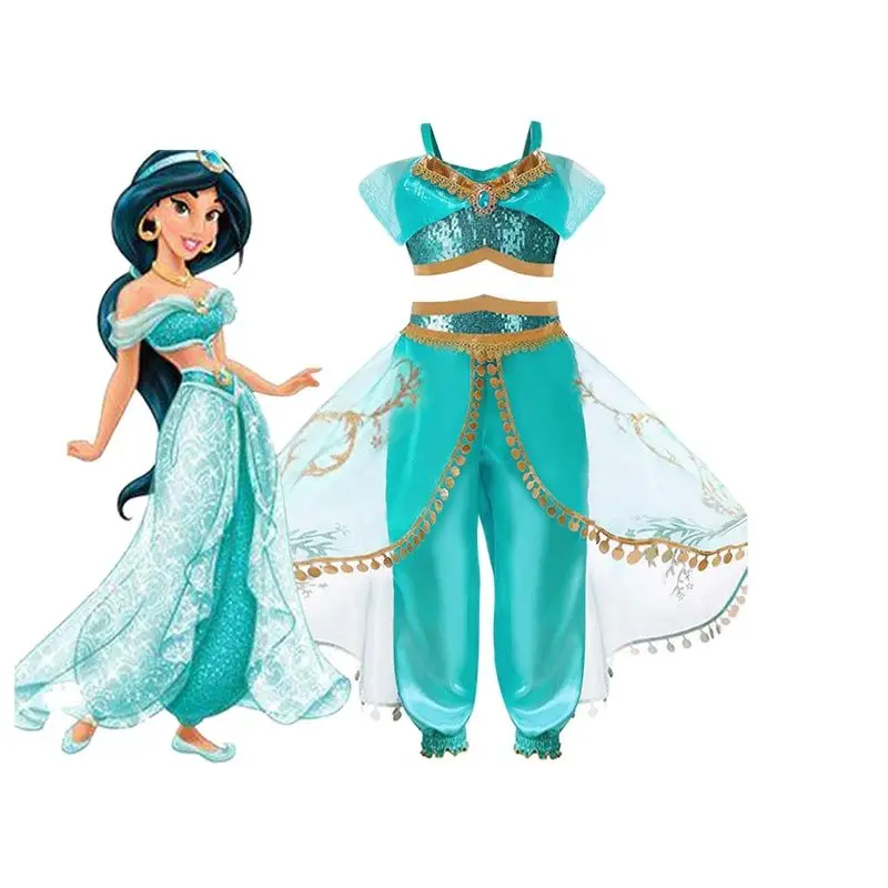 Костюмы на Хэллоуин для рождественской вечеринки маскарадный костюм дети, девочки, принцесса, платье цвета жасмин костюмы для детей; Детская одежда; Нарядное платье для танца живота, костюм