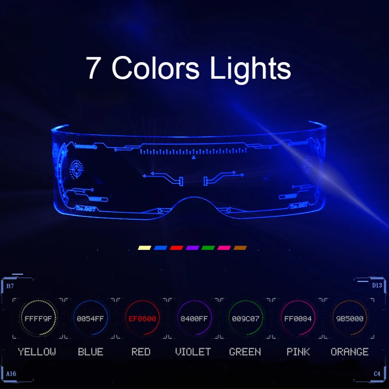 Очки Cyberpunk со светодиодсветильник кой для мужчин и женщин, футуристические дизайнерские темные очки, прямоугольные светящиеся ночью очки, светящиеся очки
