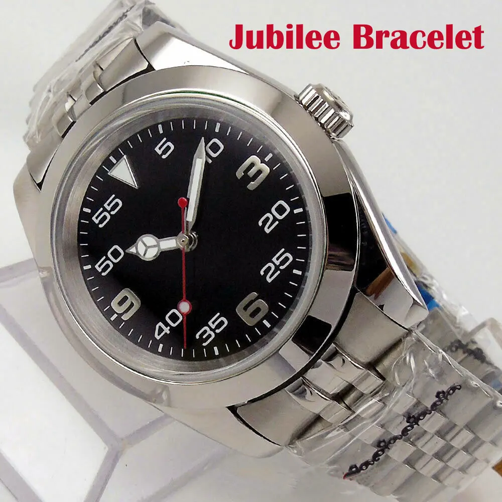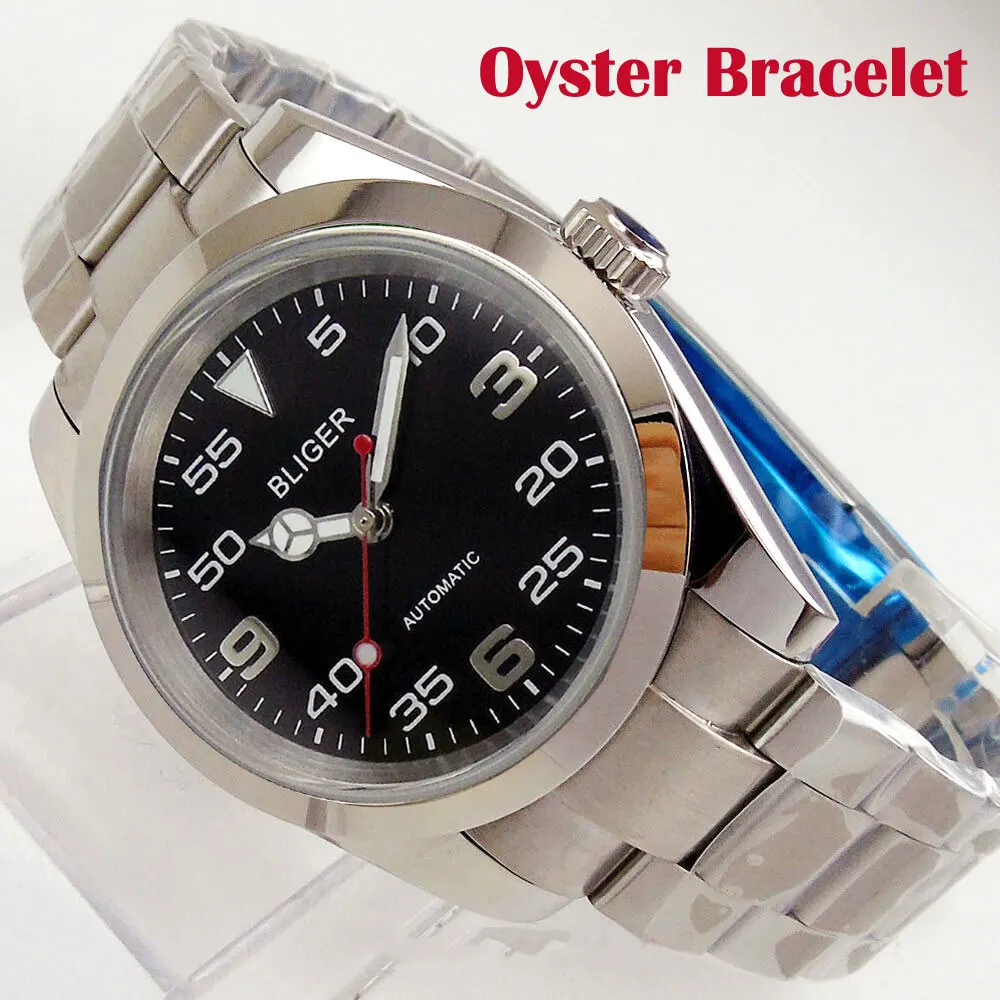 Часы мужские, унисекс, с автоподзаводом, 36 мм, Miyota8215NH35A, черный циферблат, сапфировое стекло, браслет УстрицаЮбилей, зеленый Лум