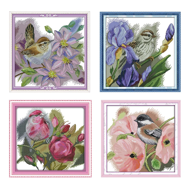 Штампованные Вышивка крестом Наборы рукоделие воробей и цветочный принт; 11CT 14CT Счетный узоры ремесла домашний декор для ванной комнаты