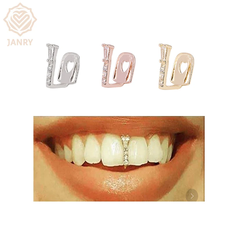 JANRY вертикальные одинарные золотые зубцы с 4 алмазными скобами CZ, зубная решетка для мужчин, женщин, мужчин, Подарочные Подарки, лидер продаж