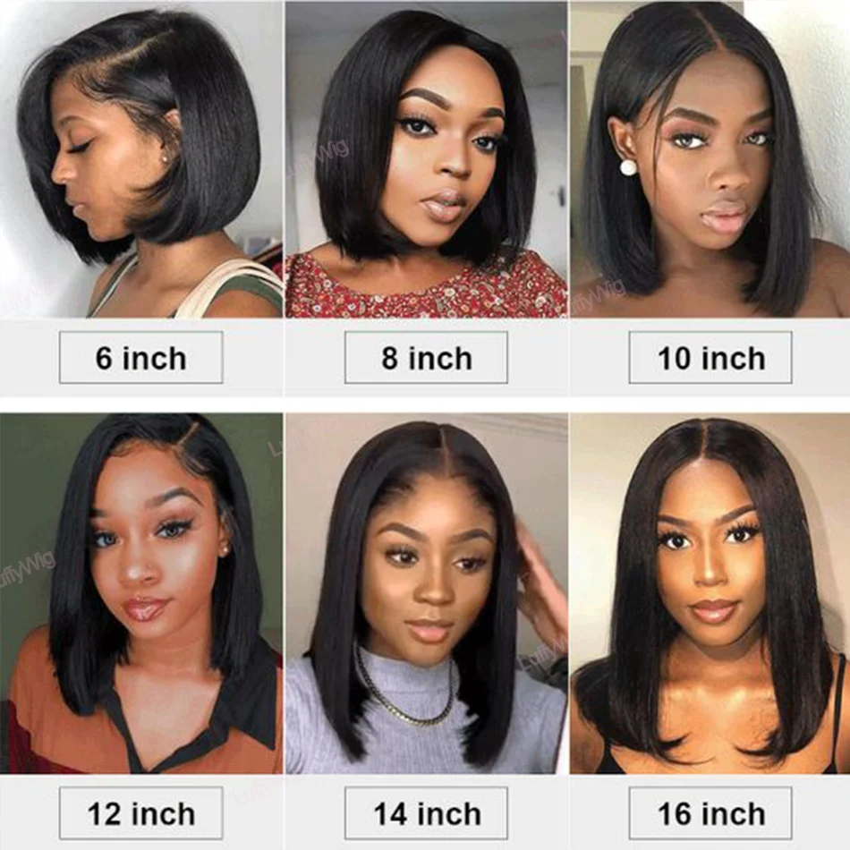 Короткий прямой парик Боб, индийские волосы Remy 5x5, искусственная кожа головы на шелковой основе, кружевные парики из человеческих волос, без клея, предварительно выщипанные волосы Luffy