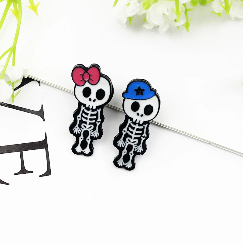 Броши в форме скелета для мальчиков и девочек с красным бантом Скелет лучшего друга эмалированные заколки значок на лацкан для друга ювелирные изделия подарок оптовая продажа