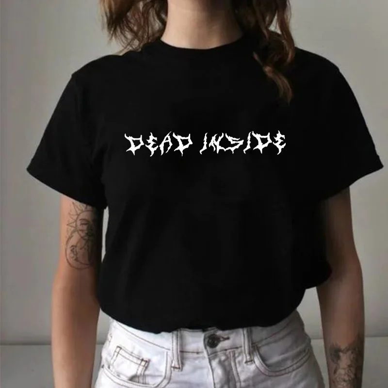 Футболка женская летняя с надписью Dead Inside, в готическом стиле, с коротким рукавом, в стиле Харадзюку