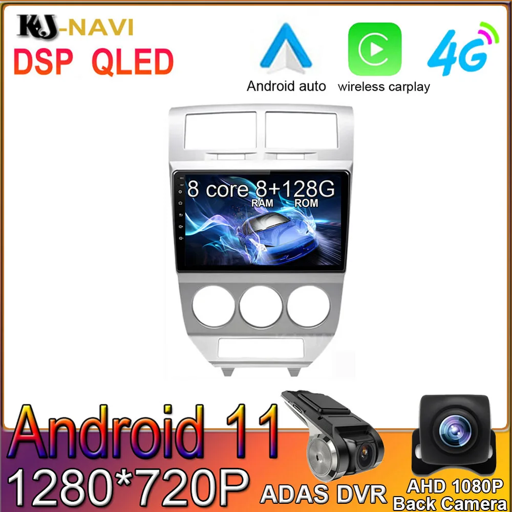 Автомобильный мультимедийный проигрыватель, 9 дюймов, 8 ядер, 8 + 128 ГБ, Android 11, для Dodge Caliber 2007-2010, с GPS, радио, BT