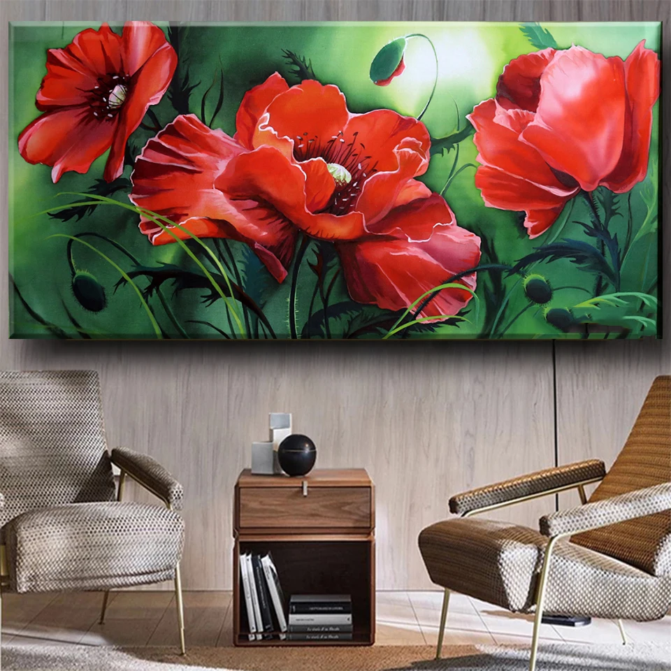 Алмазная живопись Красные маки 5d "сделай сам" Алмазная вышивка полный квадрат круглая дрель ремесло зеленые растения Цветок домашний декор A2242