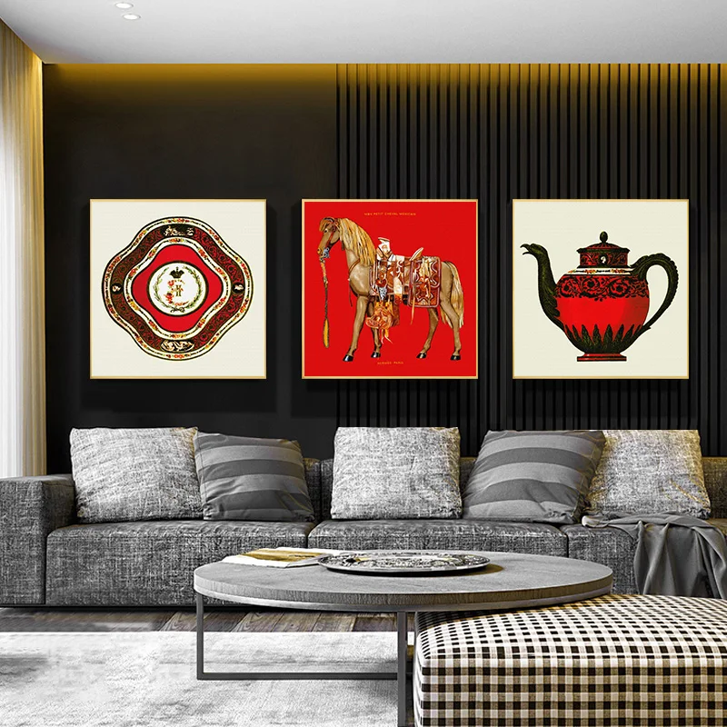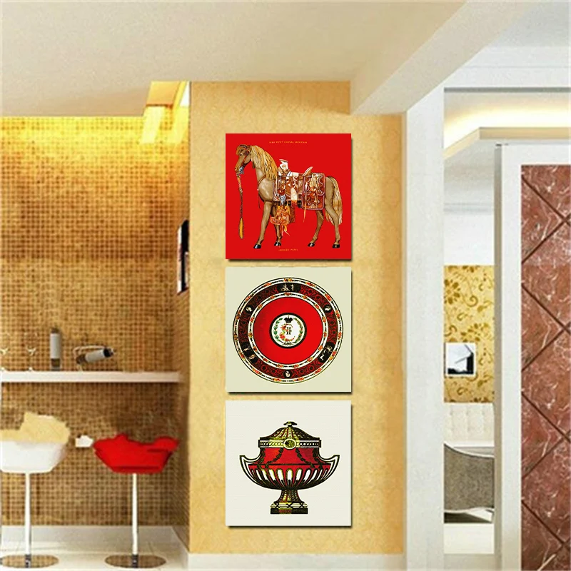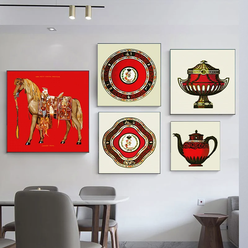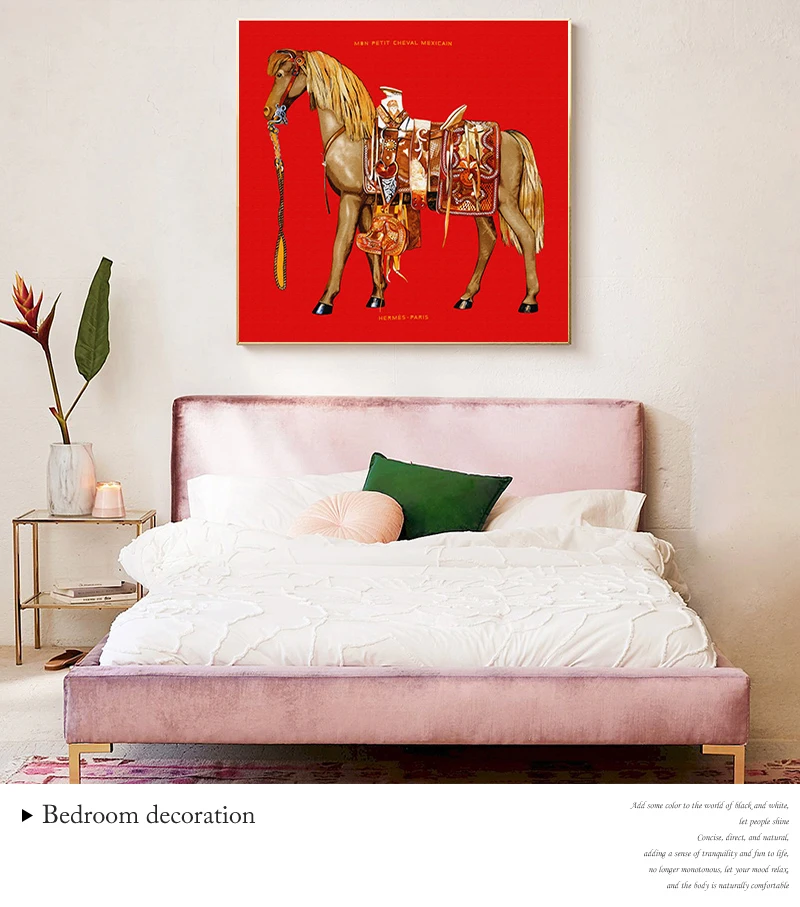 Американский Ретро с украшением красного цвета с изображением лошади росписи известный бренд Париж Wall Art Печать на холсте северных оленей головой животного картина постер декоративный для спальни