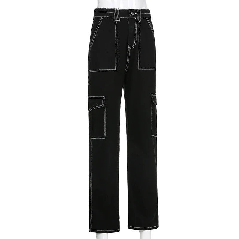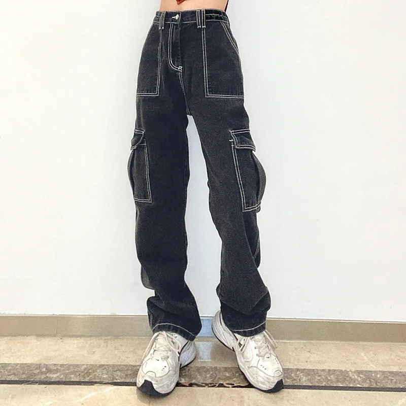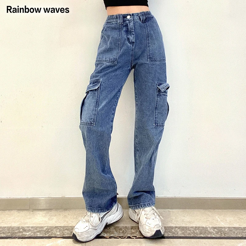 Брюки-карго Rainbowwaves женские, узкие спортивные штаны с завышенной талией, с карманами, модная уличная одежда, длинные джинсовые комбинезоны, весна-осень