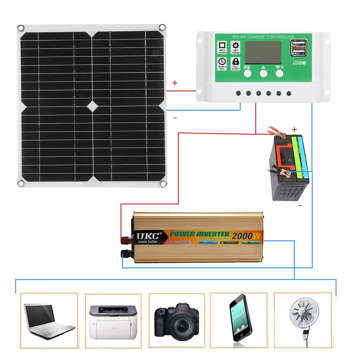 2000W Панели солнечные Dual с Мощность конвертер Водонепроницаемый солнечных батарей поли гибкие солнечные элементы для автомобиля яхты на колесах Батарея Зарядное устройство