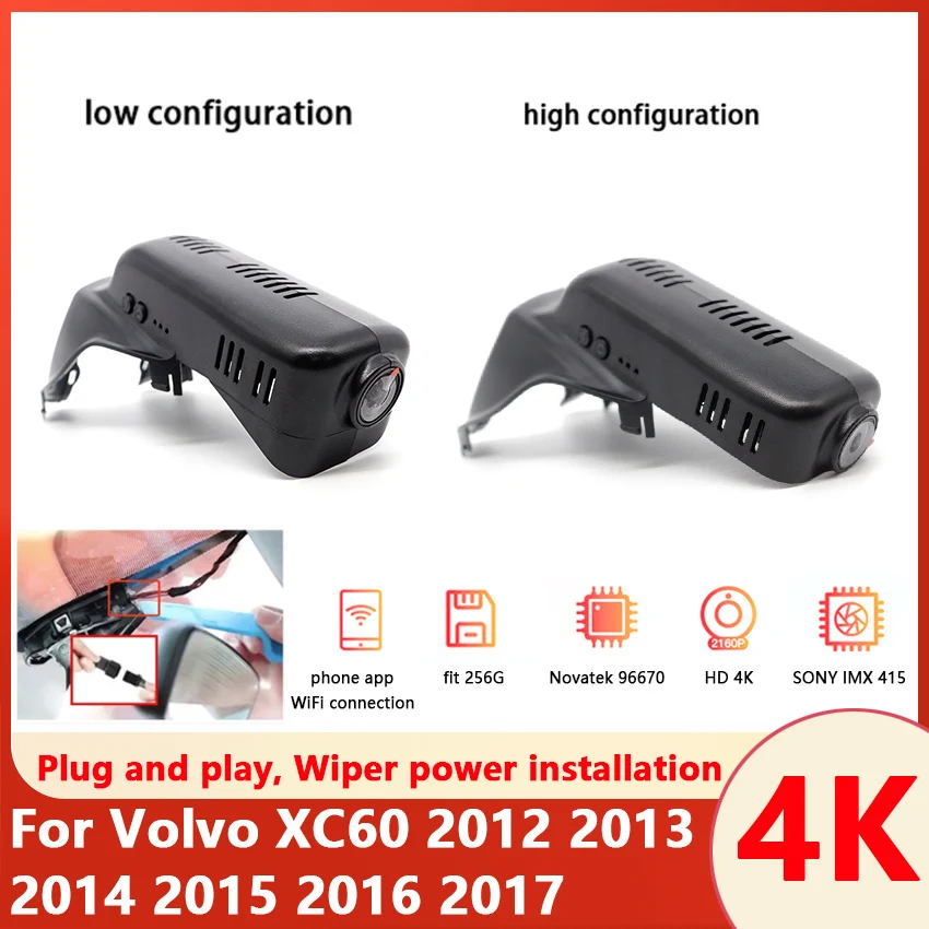 4K просты в установке Видеорегистраторы для автомобилей Wi-Fi видеокамера с Регистраторы Dash Cam Камера для Volvo XC60 2012 2013 2014 2015 2016 2017 приложение Управление Функция