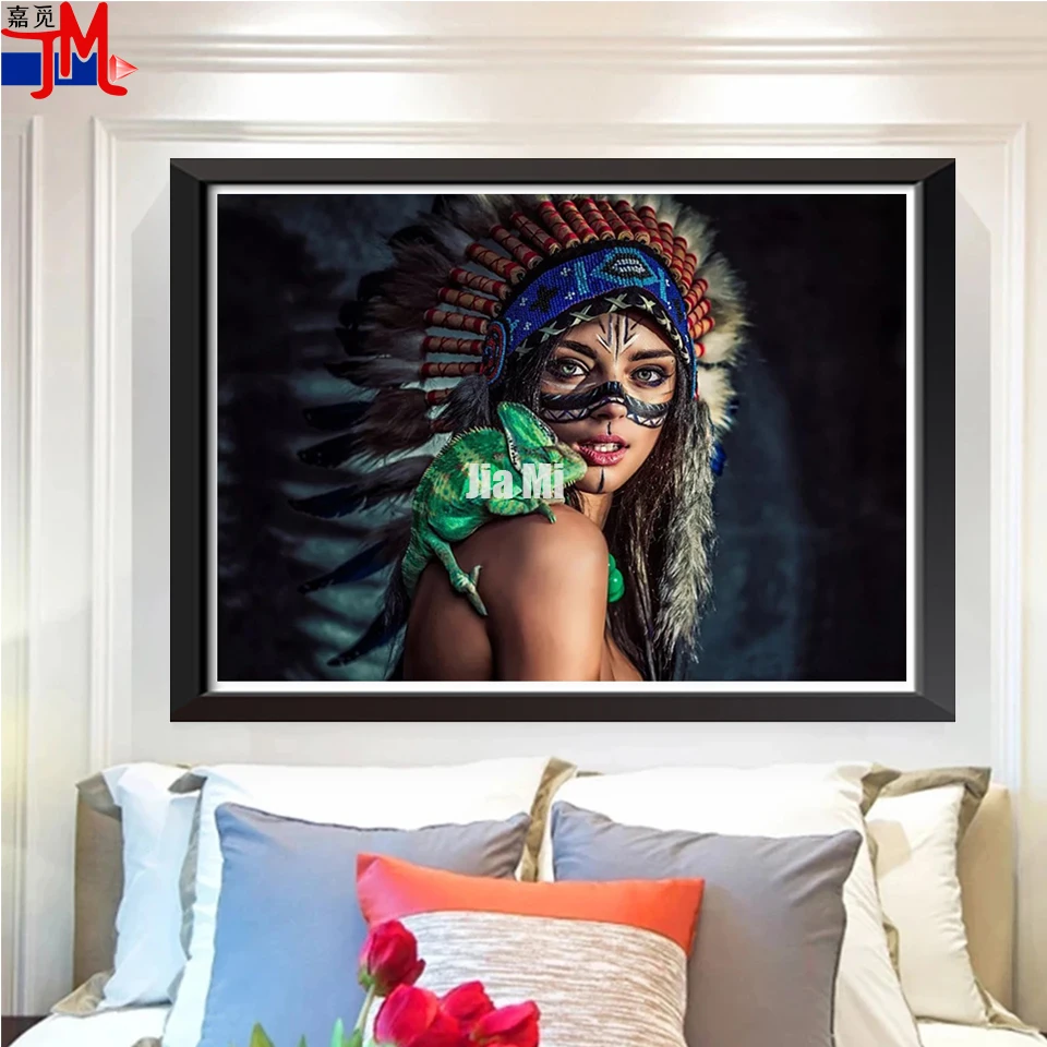 5D алмазная живопись сделай сам, мозаика, индейская сексуальная женщина, портрет, искусство, полная квадратная, круглая, дрель, ящерица, вышивка крестиком, ручная работа