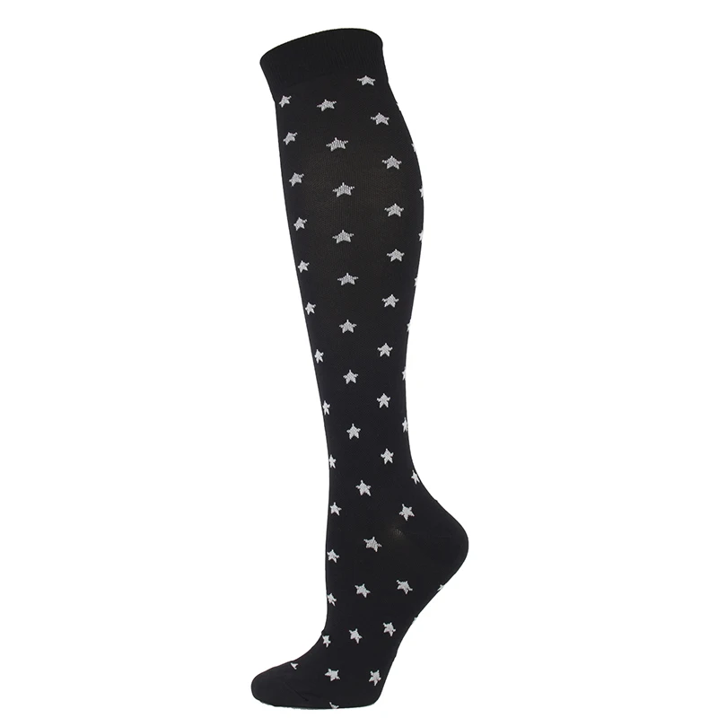 Чулки компрессионные унисекс, черные, в горошек, в полоску, со звез...