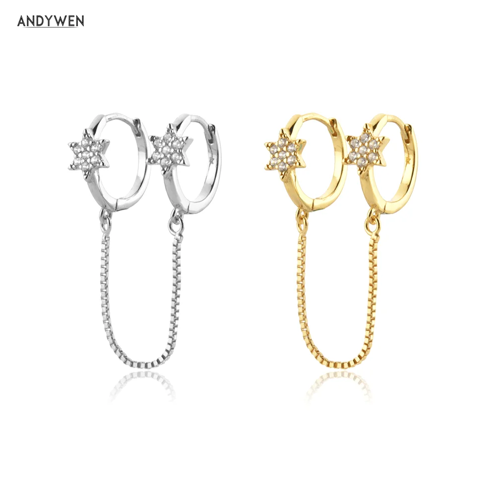 Цепочка ANDYWEN из стерлингового серебра 925 пробы с фианитом и звездой