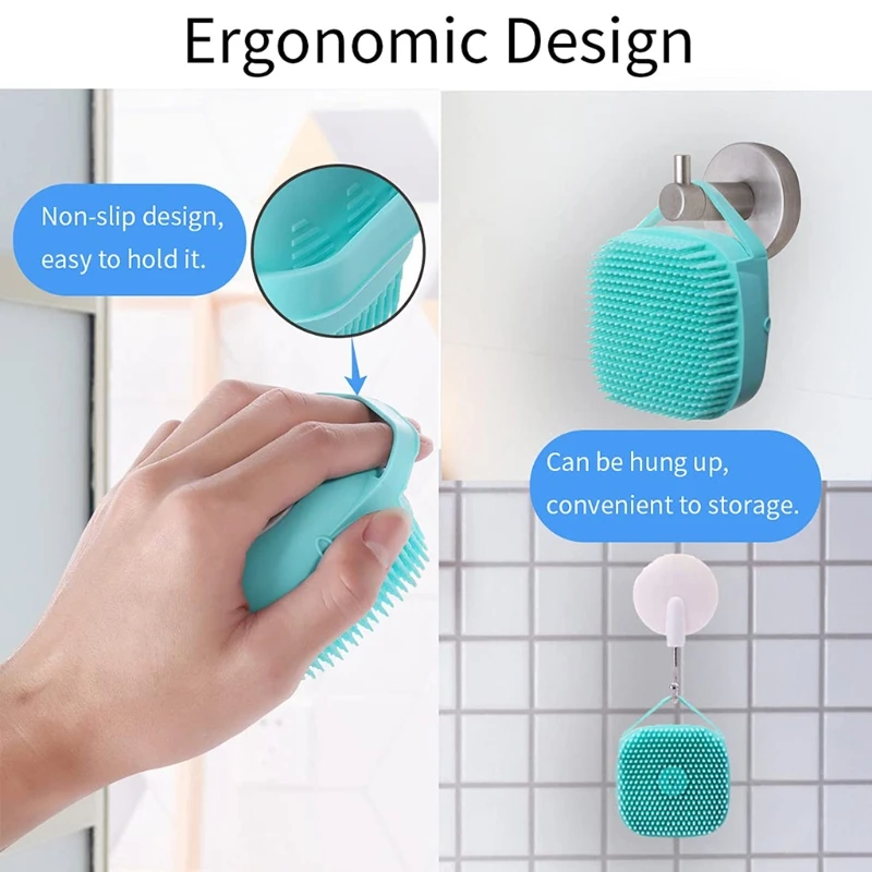 Силиконовая щетка для тела Скраб для душа с дозатор-гель для душа Функция Мягкий банный халат; Массажный, отшелушивающий очистки с одной главной балкой с крючком