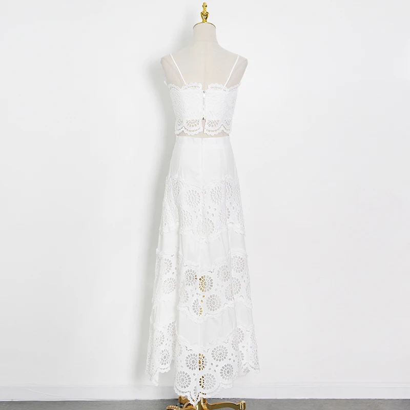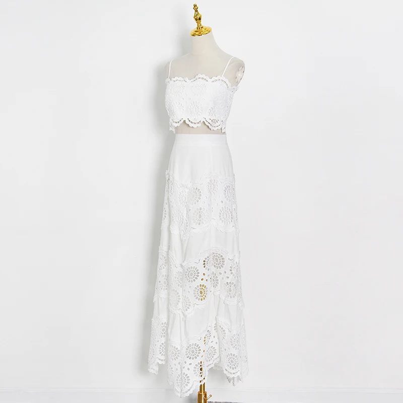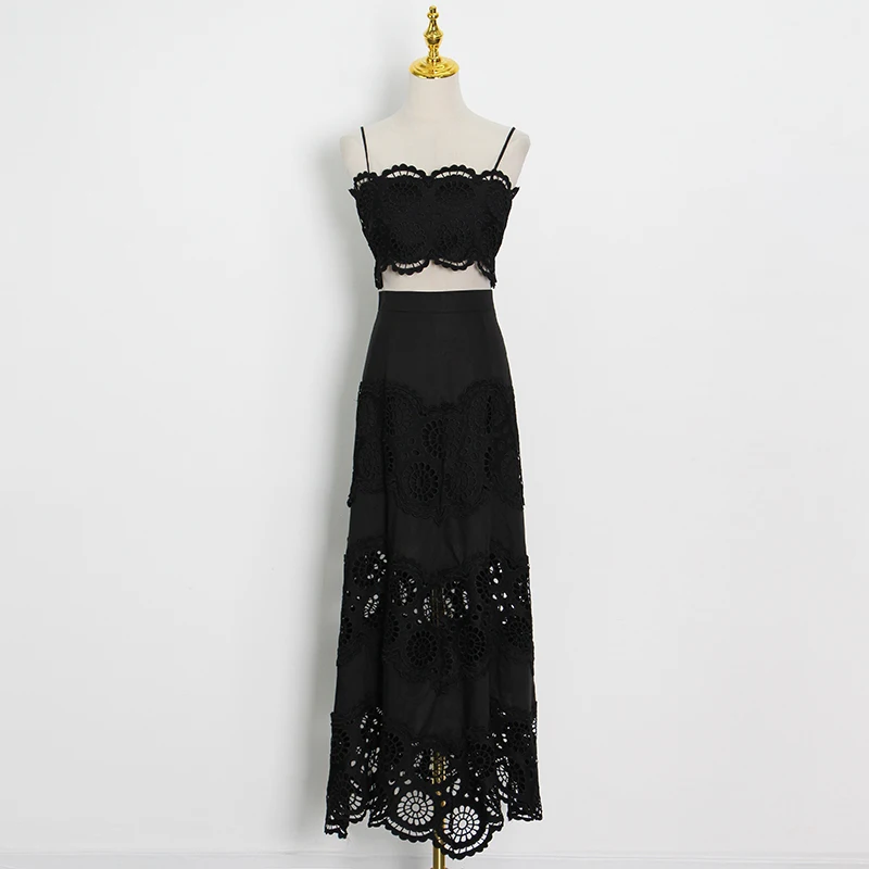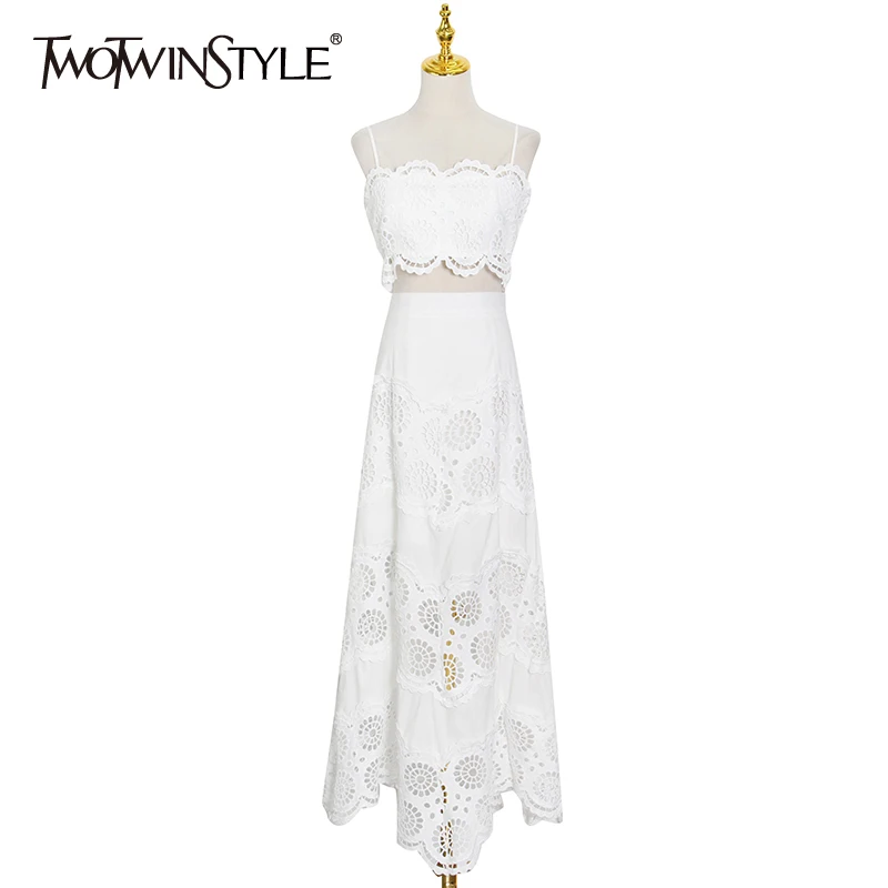 Женский кружевной комплект TWOTWINSTYLE, комплект из двух предметов, топ без рукавов, с квадратным вырезом, юбка средней длины с высокой талией