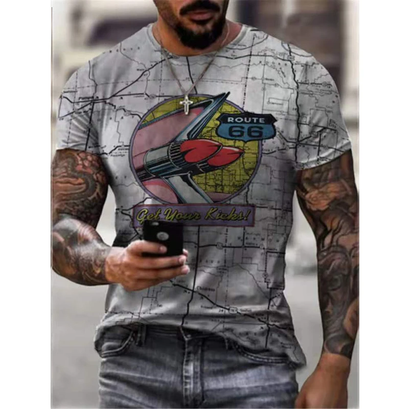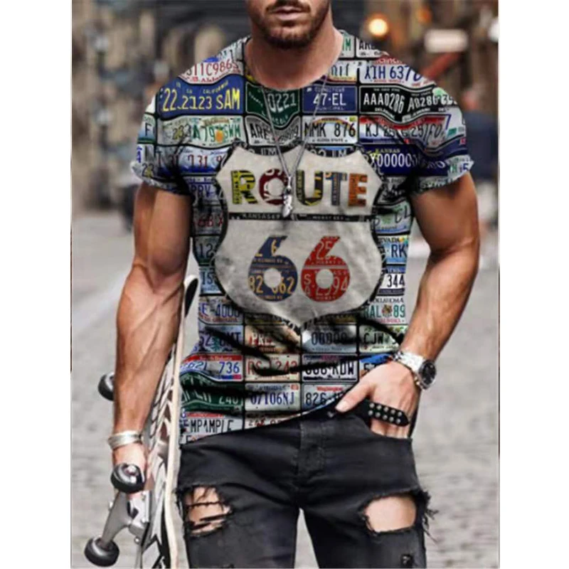 Модный 66 3D печать футболка, новая летняя футболка с короткими рукавами и застежкой-молнией на спине, с круглым вырезом для мужчин рубашка свободного кроя в стиле ретро уличная модная одежда