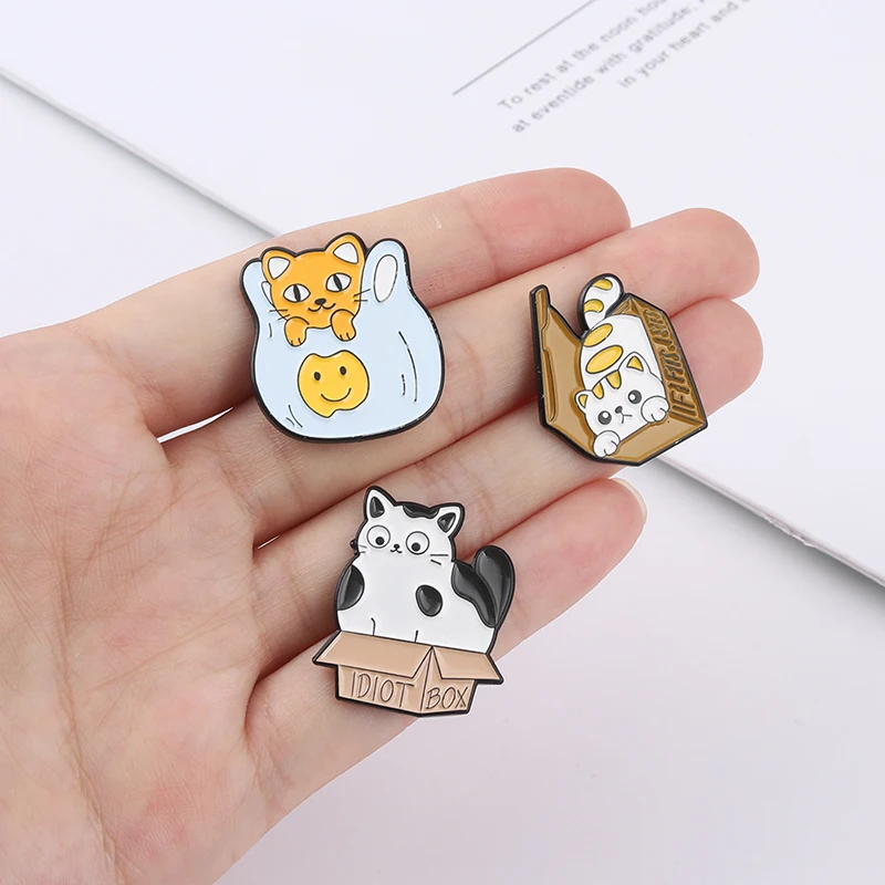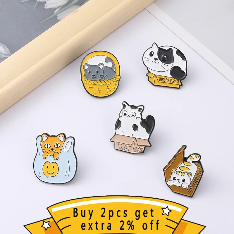 Мультяшные забавные булавки в виде кота, серия милых животных, унив...